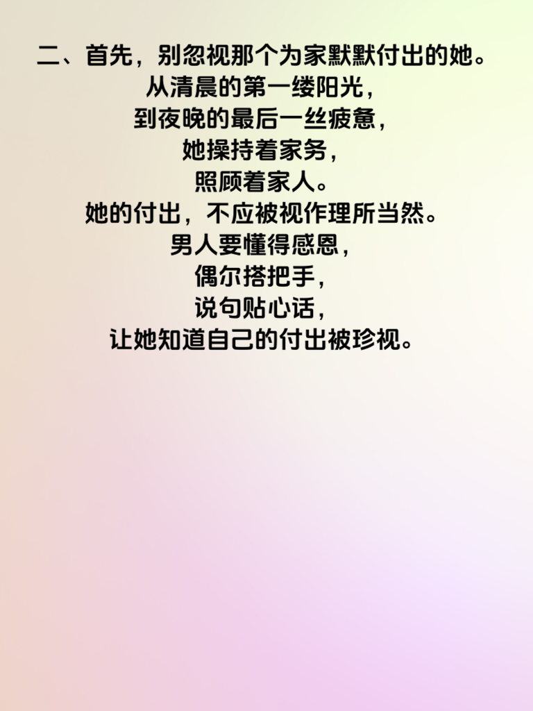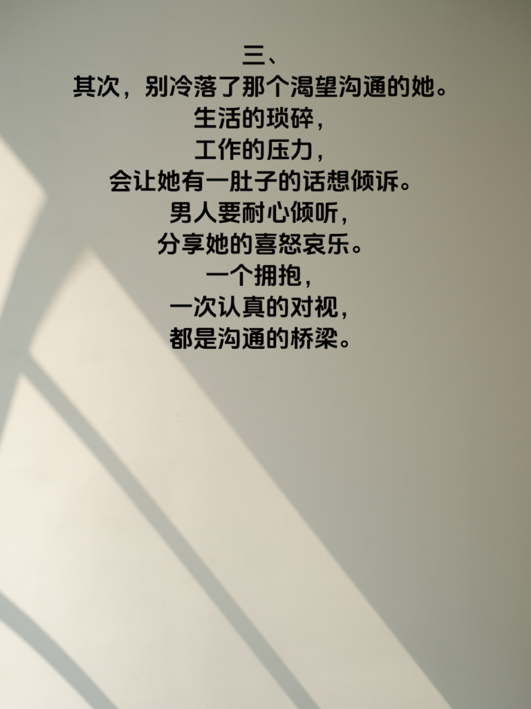 一、婚后,若忽视这4种女人,离婚率真的会飙升!爱情走入婚姻,并非终点,而是新旅程的开始。在这个过程中,男人对女人的态度,往往决定了婚姻的走向。 二、首先,别忽视那个为家默默付出的她。从清晨的第一缕阳光,到夜晚的最后一丝疲惫,她操持着家务,照顾着家人。她的付出,不应被视作理所当然。男人要懂得感恩,偶尔搭把手,说句贴心话,让她知道自己的付出被珍视。 三、其次,别冷落了那个渴望沟通的她。生活的琐碎,工作的压力,会让她有一肚子的话想倾诉。男人要耐心倾听,分享她的喜怒哀乐。一个拥抱,一次认真的对视,都是沟通的桥梁。 四、再者,别无视那个需要关爱的她。女人是感性动物,需要男人的呵护。生病时的照顾,纪念日的惊喜,平凡日子里的小浪漫,都能让她感受到爱。 五、最后,别忽略那个不断成长的她。她有自己的梦想和追求,男人应支持她的进步。共同成长,婚姻才能保持活力。重视这4种女人,婚姻才能长久甜蜜,远离离婚危机。