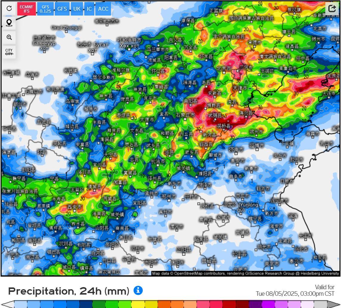 昨天夜里到今天上午,华北地区迎来了第一轮大范围降雨过程,山西中部、河北中南部出现中到大雨局部暴雨,山西原平、河北柏乡达大暴雨量级。本轮降雨过程依旧以强对流天气为主,受影响地区短时雨量大,但雨水分布不均,各地区间雨量差异明显,未被对流云团影响的地区普遍只有小雨量级。 预计今天夜里到明天上午,华北中东部将迎来新一轮对流活动,山西东部、京津冀大部、山东北部地区将有中到大雨,京津冀中东部可达暴雨量级局部大暴雨。中央气象台给出的雨量极值非常强,河北东南部可能出现250-270毫米的特大暴雨,但数值预报并没有体现,只给了50毫米左右的大到暴雨,两者差异很大。这个很难说哪个更准确,出现特大暴雨的可能性应该不大,但也要做好应对准备。 #头号创作者激励计划#