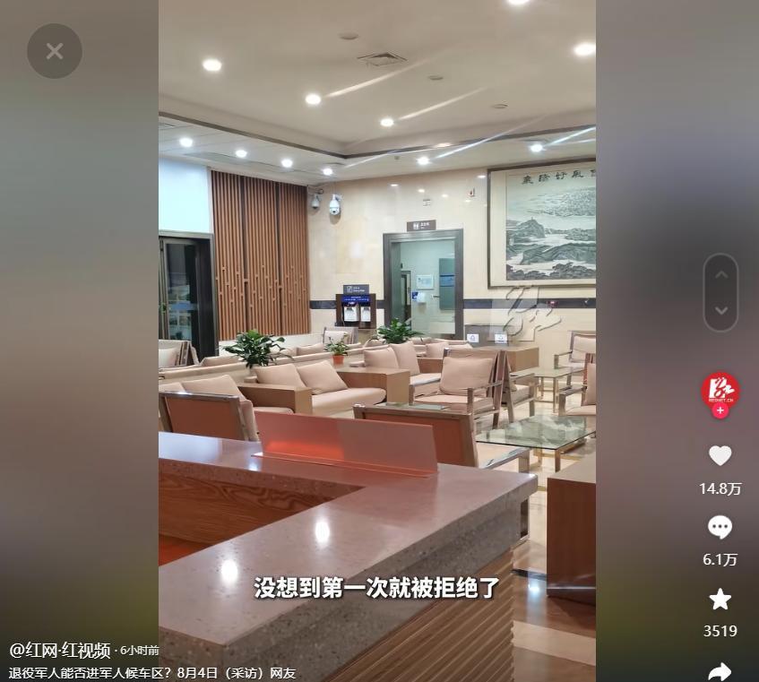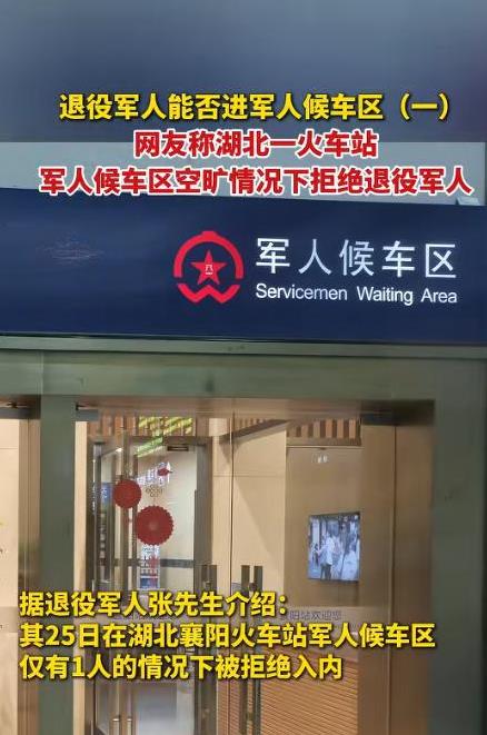湖北襄阳,退役军人来到火车站,看到军人候车区空无一人,他当时想清静一下,就想进去休息一下,结果被拒绝了,他可是第一次进入这样的候车区,就被拒绝了,他质问工作人员,他们说,只有现役军人才可以进去,退役军人是不可以进去的。 8月4日报道,张先生是一名退役军人,在战场上抛头颅洒热血,服役8年回到家后,也没有给国家添过任何麻烦,他觉得自己要为国家做很多很多的事情,哪怕退役了,不是现役军人,但责任都是一样的。 事情发生在25日的湖北襄阳火车站军人候车区。当时张先生进入火车站后,有很多来来往往的人,有的人提着大包小包的行李赶车,有的则是赶时间,急忙往目的地走,张先生不着急,想找一个比较安静的区域,结果就看见了军人候车区。 只见里面装修的很不错,有沙发、电视机,还有卫生间,看到这个候车区的时候,张先生特别感慨,现在的条件真是越来越好了。他回想起当兵的时候,条件还很艰苦,大家没有好的作战装备,没有足够多的粮食,但好在大家都有一腔热血,英勇顽强,不退缩,不低头。 张先生回想往事,觉得非常自豪,一辈子能当上兵,保卫国家,是一件非常有意义的事情。他一边想,一边往军人候车区走,想到那里去坐一坐,休息一会儿。 他以为军人候车区就是所有的军人都可以进入,不管是现役军人还是退伍军人,可让张先生没想到的是,这个候车区只有现役军人能够进入,退役军人是不能进入的...... 这让张先生格外不理解,军人候车区看上去没什么人,可能只有1个人,自己也是军人身份,为何就不行呢?为何不能一视同仁啊! 如果说立马的人很多,没有位置了,那么张先生觉得自己肯定会出来,不会进去抢位置,紧着年轻人,可问题是里面没有很多人。 除此之外,张先生也感到难受。这是他第一次主动进入军人候车区,以前不知道有什么条件,需要怎么才够资格进入军人候车区,此次他才知道要想进去,只有现役军人才可以。 而张先生此前从来没有走哪都告诉别人自己是军人的身份,他就把自己当做普通人一样看待,结果这一次竟被拒绝了,内心万万不能接受,认为自己没有被尊重,现役军人值得敬佩没错,但退役军人更值得尊重和敬佩。 他们为国家做出那么多事情,那么多贡献,应当得到这些待遇。更值得注意的是,现役军人也会变成退役军人的! 当网友们看到这个视频的时候都在说,退役军人理应和现役军人一样。休息室空无一人,浪费资源,休息一下有何不可! 现役军人平时除了少数的探家,出公差有多少人出来坐火车。这么大的侯车室也应该让退役军人进去休息候车。 不过也有网友说,自己也是一名退役军人,遇到这种情况会尊重火车站的规则。退役军人与现役军人还是有区别的,现在国家已经给了我们很多优惠,已经很好了,我们不能强求与现役军人一样。 那么,你们是如何看待这件事的?
