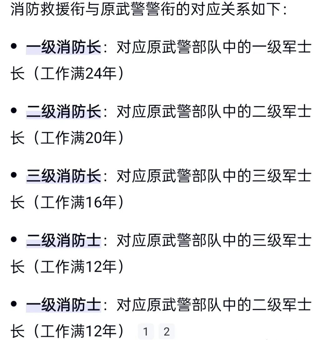 还有说法是这一消防救援衔对应原武警部队的3级军士长。