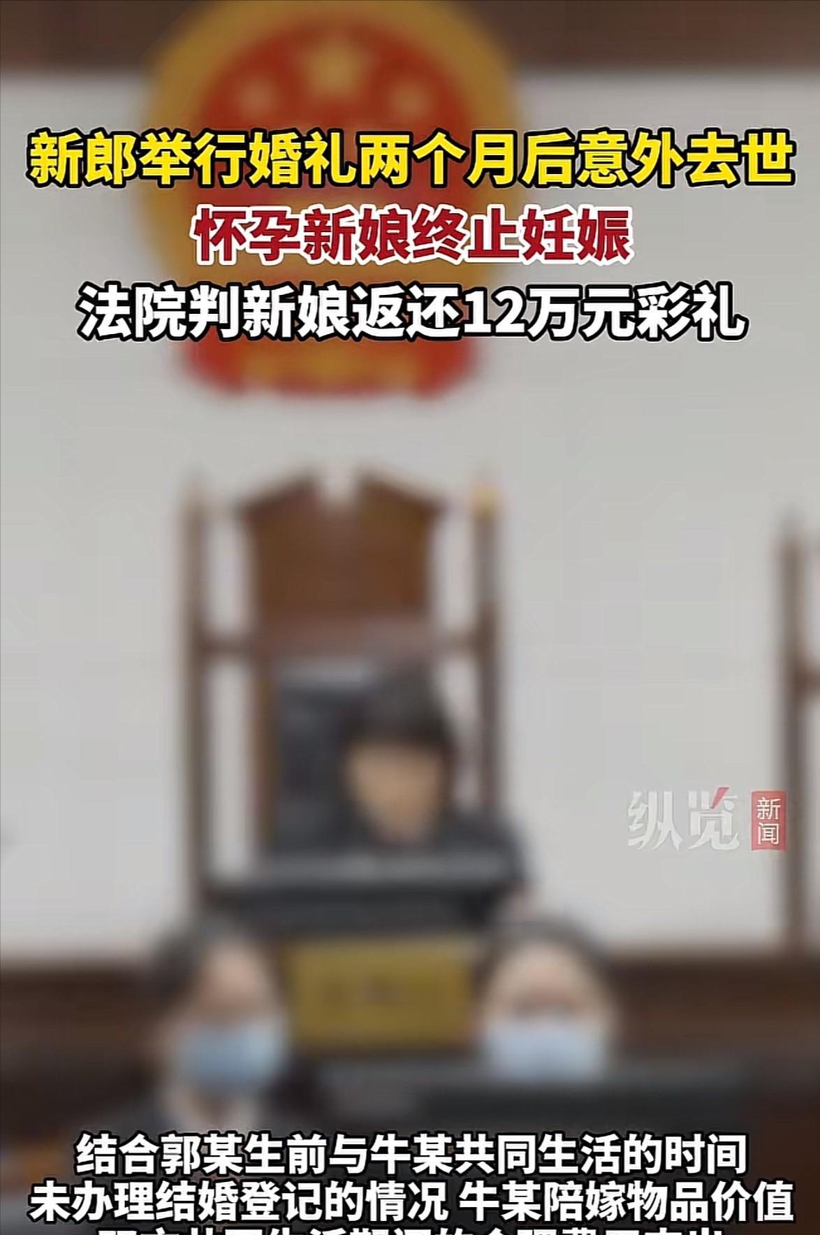 河南,女子婚后2个月,丈夫意外离世,彼时,她已经怀孕。公婆劝女子把孩子生下,为他们家留个后,女子先是答应,随后又变卦了,背着公婆,偷偷跑到医院将孩子打了,公婆知道后,怒不可遏,仅用一招让女子后悔不已。 他那句“我要当爸爸了”,还回响在牛某耳边。当时郭某异常兴奋,承诺要用八抬大轿,风风光光把她娶进门。牛某深受感动,庆幸自己没有看错人。 郭某的父母更是乐得合不拢嘴,想着马上就能抱孙子。为了表达看重,他们按当地风俗,给了26.6万元彩礼,还花了2万6千多买了“三金”,婚礼办了,很热闹。但在法律上,那张纸,他们一直没去领。 谁也想不到,婚礼刚过两个月,郭某就出意外走了。这个消息像晴天霹雳,把所有人都打懵了。牛某瘫倒在地,哭得撕心裂肺。自己刚结婚就成了寡妇,肚子里还怀着五个多月的孩子。 郭某的父母更是承受不住,白发人送黑发人,几天就苍老了十岁。家里安静得让人窒息,整日以泪洗面。 葬礼办完,老两口缓过来一点。儿子没了,但肚子里还有个没出世的孙子,这是郭家唯一的念想了。他们苦口婆心劝牛某,说孩子生下来一起养,绝不让她一个人受苦。牛某看着伤心的公婆,点头答应了。 可冷静下来,牛某越想越怕。公婆年纪大了,现在说得好听,以后真有心无力怎么办?她太清楚一个单身妈妈拉扯孩子有多难,6月底,牛某瞒着公婆,一个人去医院打掉了孩子。 这事传到郭某父母耳朵里,老两口的心彻底凉了。唯一的根,就这么断了。更让他们无法接受的是,牛某做决定前,连个商量的余地都没给。他们觉得牛某做得太过分了。 老两口怒不可遏,既然牛某连郭家的根都断了,那就别怪他们不顾情面。一纸诉状,把牛某告上法庭,要求返还15万彩礼。 这官司能打,关键就在于那张结婚证没领。按照法律规定,双方没办结婚登记,给出去的彩礼,是可以要回来的。郭家父母的起诉,于法有据。 法律上也得说句公道话,牛某打掉孩子,这事她有权利做主。《妇女权益保障法》写得很清楚,女方有生育的自由,自然也有不生育的自由。从法律上讲,她这个行为没有过错,最后,法院判了,牛某返还12万元。牛某不服,上诉,二审还是维持原判。 这事一出,网上说什么的都有。有人说,换我也不生,孩子一出生就没爹,养孩子多难谁养谁知道,这对孩子也不公平,也有人觉得牛某太绝情。老人家唯一的后代啊,给人家留个后,说不定根本就不会起诉你,何必做得这么干脆。 其实,这事里没有绝对的坏人,郭家父母想留个念想,延续血脉,没错。牛某不想自己下半辈子被绑住,为自己将来考虑,也没错。 错就错在造物弄人,一场意外,把所有人都逼到了绝境。既然成不了一家人,那就只能算清过去的账。法律划下了一条线,但线两边的人,都带着无法弥补的伤痛,各自走向了没有对方的未来。