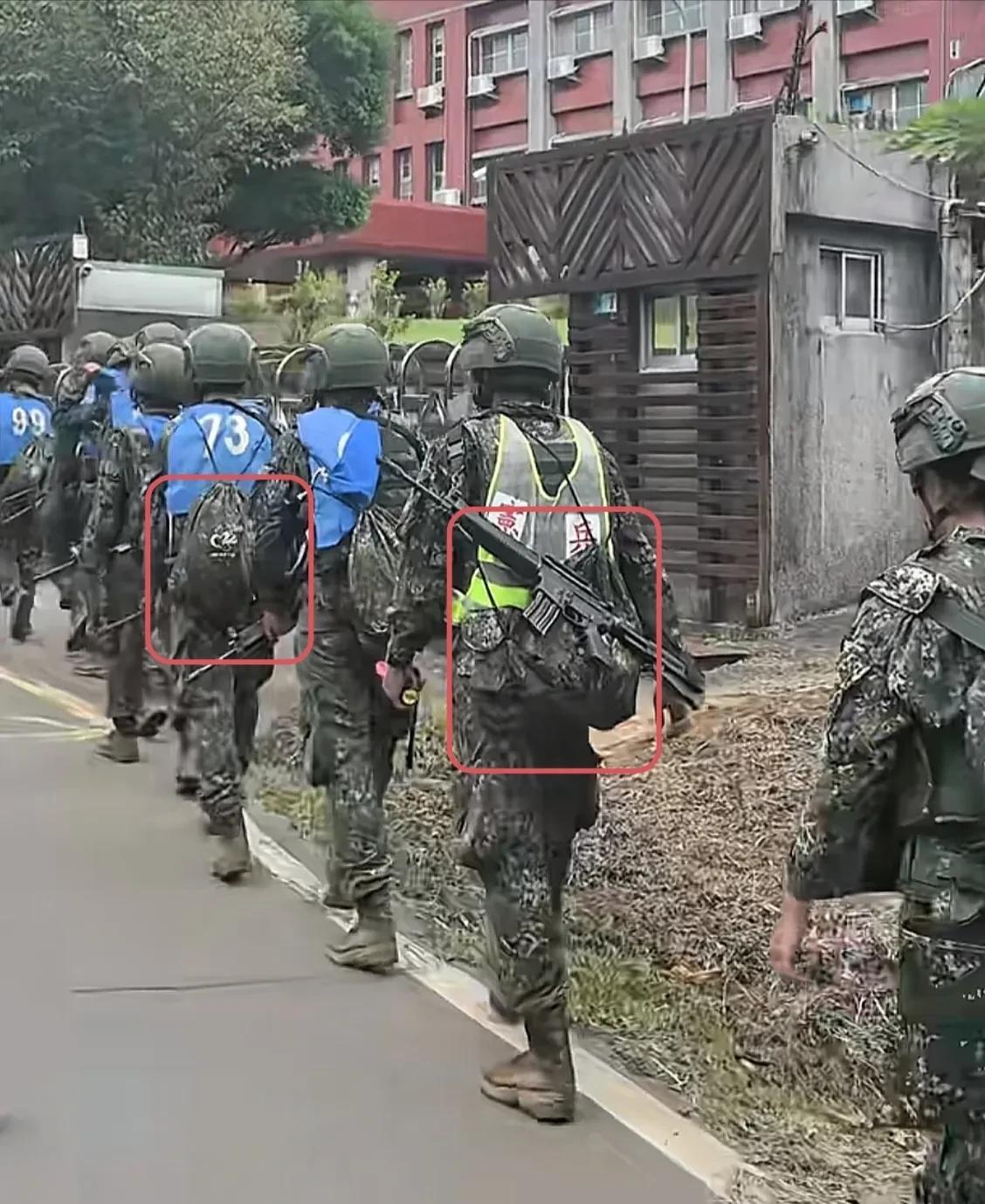 请仔细看一个细节:一小队台军野外拉练时竟然背着一个小麻袋一样的背包。这应该是台湾军队制式的背囊,奇怪的是,它套在士兵双肩的是两条超细的绳子而不是宽厚的背带,台军士兵的双肩难道不怕勒的疼吗? 台湾军队的演习或日常训练,无论行程多远,他们很少背行囊,应该就是这个原因,这样的军队能抵抗几天看一下他们的背囊就知道答案了。