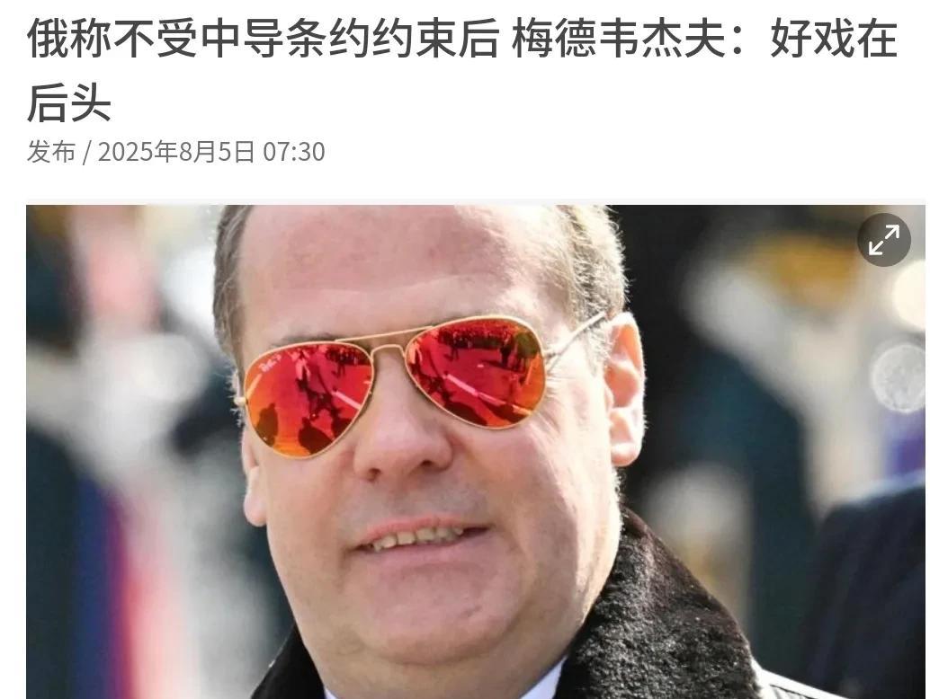 梅德韦杰夫再次反将特朗普一军!在特朗普宣布两艘核潜艇派往适当区域之后,俄罗斯又有了新动作。8月4日,俄罗斯外交部宣布俄方不再受《中程导弹条约》约束。而借着这一宣布,俄罗斯联邦安全会议副主席梅德韦杰夫再次对特朗普进行回敬。梅德韦杰夫表示,俄罗斯外交部关于撤销暂停部署中短程导弹的声明,是北约国家反俄政策的结果。 这是我们的所有反对者必须面对的新现实。好戏在后!很显然,面对与特朗普之间的隔空交锋,梅德韦杰夫的态度就是寸步不让。当然,这两人的隔空交锋,我们不能简单的理解为这是两人之间的口水仗。这事实上反映的是美俄两国之间在安全领域严重缺乏互信,为了达到迫使对方让步的目的,双方都选择展示自己的拳头。 无疑,现在俄罗斯的回应,这是暂时的压过了美国一头。这样的回应,无疑让特朗普会感到头疼。一方面,特朗普不想输了面子之争。另一方面,特朗普明显也不希望美俄关系进一步恶化。事实上,特朗普施压俄罗斯,以实现俄乌停火,根本上就是要进一步扫清美俄关系的障碍。但现在双方互不相让,都没有给对方台阶,美国想要实现战略调整就不得不进一步延缓,这无疑让特朗普会更加焦躁。 #头号创作者激励计划#