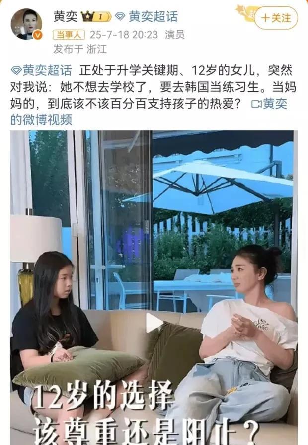 黄奕反向育儿绝了!带12岁女儿赴韩体验练习生,娃累瘫喊"继续练" >女儿累瘫在地却仍喊"继续练",黄奕反手一记"现实暴击"—— >韩国练习室镜子前,12岁黄芊玲压腿时小脸皱成苦瓜,汗珠砸在地板溅起微小水花。 >SM公司大楼外,黄奕指着门前汹涌人潮挑眉:"瞧见没?200万人抢75个座位,你猜她们练废几双舞鞋了?" 内娱虎妈教科书上演!** 当12岁闺女捧着小脸宣布"不想上学想当爱豆",黄奕没拍桌子也没哭天抢地,反手订好机票直飞韩国——亲自送女儿沉浸式体验"练习生地狱周"。 练舞室里压腿拉到筋颤,汗如雨下妆如溶蜡;SM公司门外人潮汹涌,黄奕现场开课:"瞧瞧,200万人抢75张出道门票,练废的舞鞋能铺满汉江!"小姑娘咬碎银牙硬撑三小时,终是"啪叽"瘫成断电玩具,嘴里却还倔强嘟囔:"扶我起来...还能练!" 网友笑疯评论区:"黄姐这招釜底抽薪绝啊!""孩子此刻终于懂《还珠3》里小燕子为啥总喊'皇阿玛救命'了!" 梦想滤镜碎一地的声音** 三个月前黄芊玲眨着星星眼憧憬舞台灯光时,黄奕那句"没苦硬吃啊"曾遭群嘲。如今韩式铁拳教育下,孩子亲尝汗水的咸涩与现实的铁壁——练到崩溃躲墙角抹泪是真,攥紧拳头说"用汗水浇灌梦想"也是真。 这哪是追星之路?分明是黄奕导演的《变形计之爱豆梦碎记》!当别家星二代在贵族学校写作业,黄芊玲在练习室地板上悟透人生真理:舞台光鲜背后,是几万小时无人喝彩的枯燥重复。 飞机落地上海那刻,小姑娘红着眼圈立誓"学业唱跳两手抓"。黄奕深藏功与名莞尔一笑——教育有时无需千言万语,一场汗流浃背的"毒打"抵过万句唠叨。 追梦的童话泡泡总被现实扎破,但真正珍贵的,恰是泡沫破灭后留在掌心的晶莹水珠——那是认清真相却依然热爱的勇气。黄奕的"虎妈行动"看似残酷,实则为孩子推开一扇直面世界的窗。