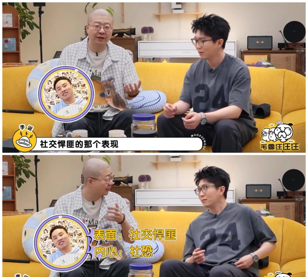 李雪琴知道徐志胜各种资源都是李诞的 李诞直接说徐志胜傻不拉几。 摇头长长叹了一口气。 李诞直言就算他介绍资源和朋友给徐志胜 但是徐志胜没有接住, 他有点社恐。 毛不易听到这样话都惊呆了。 网友都从各种节目 里得知了徐志胜“社交悍匪”的名号 与行为。 但是作为徐志胜的朋友的李诞 和李雪琴有不一样的看法。 他们觉得徐志胜那个 表面的社交悍匪的行为, 正是社恐的极端表现, 他的内心是极其社恐的。 他不享受社交的过程, 是被逼的。 也许是为了生活吧。 所以毛不易会看到徐志胜脱口秀比赛 会感觉到他很不容易, 会很累的感觉, 就算他尽力掩饰, 也逃不过像毛不易这样敏感的观众的眼睛。 与之相反, 另外一个脱口秀演员呼兰就是由内而外的 散发出轻松的感觉, 他是享受社交的过程的, 是名副其实的社交悍匪。 所以身边说话滔滔不绝的人 不一定真的喜欢社交, 有时是极端社恐的表现, 你就不要总是拉着他参加各种聚会了, 他内心是抗拒的。 有些人明明很社恐, 却为了生活, 不得不每天接触形形色色的人。