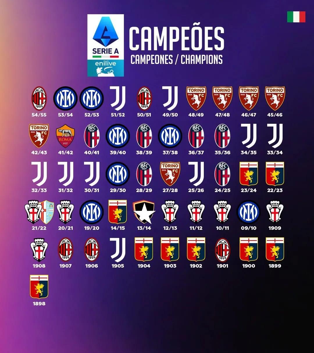 意甲历年冠军一览, 老妇人霸榜, 米兰双雄紧随其后