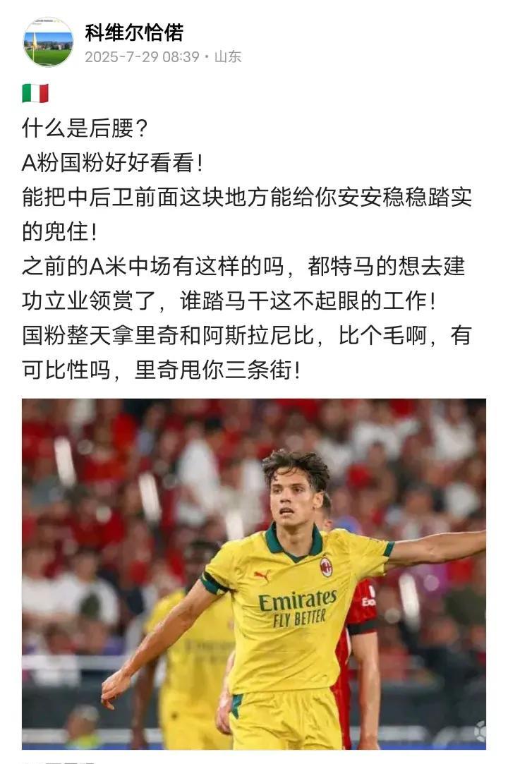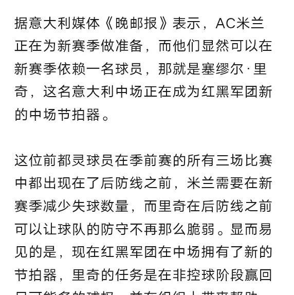 意大利《晚邮报》的文章和我之前的贴子不谋而合 就是AC米兰终于找到一个在中后卫之前的区域安心工作的人。
