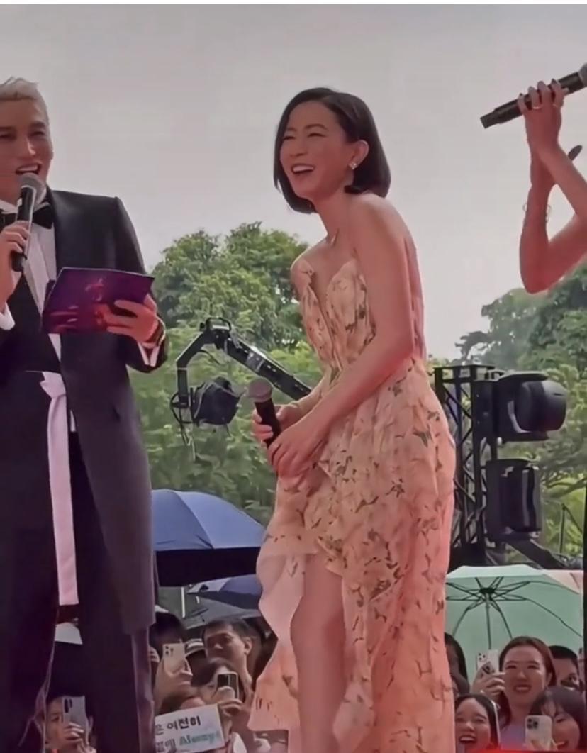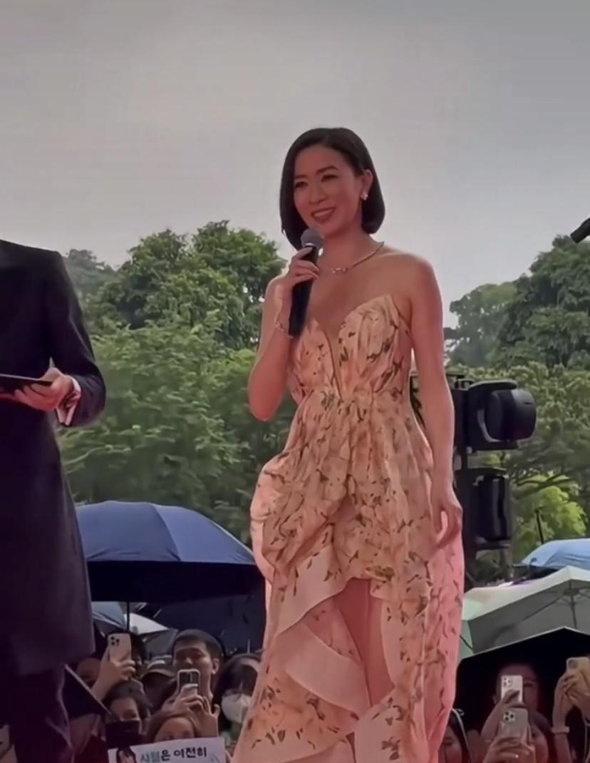44岁的佘诗曼穿着花色吊带裙出席线下活动,简直美翻了!年轻时她就是TVB当家花旦