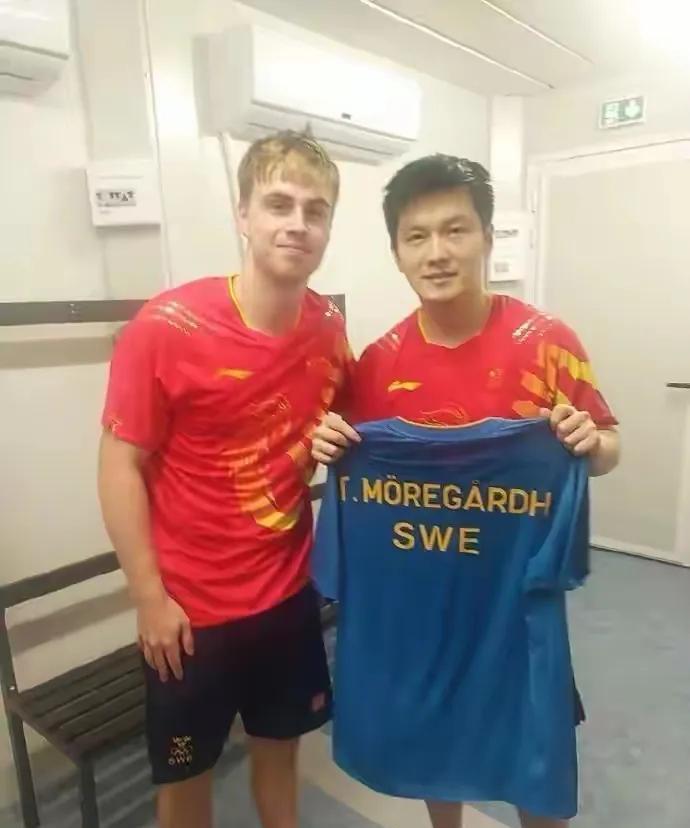 对手+朋友!莫雷加德与樊振东周年聚餐! 北京时间8月4日,莫雷加德晒与樊振东在德