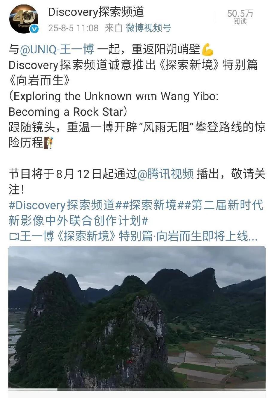 也就是说会有很多王一博的小膀子,还有睡岩壁的镜头了? 这次的《探索新境》特别篇《向岩而生》,是专门把阳朔攀岩单独剪了一期吗[呲牙]? 会不会有一博吃牛肉的镜头,点外卖的镜头,还有一博晚上睡在崖壁上那漫长的一夜,会不会也有新镜头剪出来? 想想就精彩。 下周8月12号11点不见不散。 #王一博探险# #极限攀岩运动#