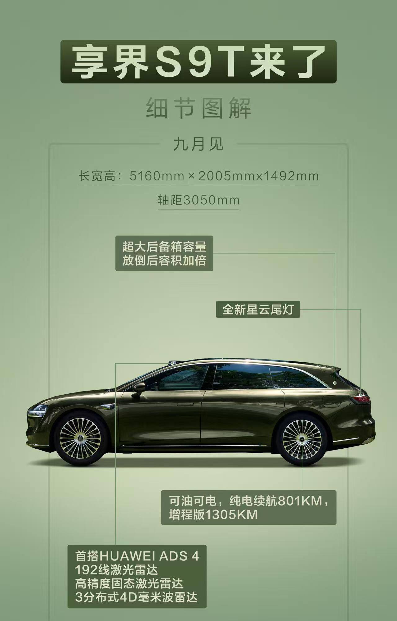 自亮相以来,作为鸿蒙智行首款旅行车的享界S9T便热度不减。近日,余承东在社交平台放出其黑武士美图,酷感十足的黑色车身搭配车顶行李箱,瞬间点燃车友热情。 目前基本可以确定,享界S9T的可玩性已经拉满:黑曜套件可选装,从细节处彰显个性;掀背式尾门搭配3050mm轴距的超大空间,露营装备、城市通勤物品轻松收纳。车顶“小书包”更添户外基因,让人畅想加装行李架、侧帐等改装玩法。 纯电801km、增程1305km的续航,兼顾城市通勤与旷野穿越;华为赋能的智驾系统和豪华配置,让科技感与实用性并存。9月上市的享界S9T,既是旅行伙伴,也是城市潮品,难怪能持续圈粉。 #享界S9T黑武士官图曝光# #余承东曝享界S9T黑武士版本# #享界S9T黑武士曝光#