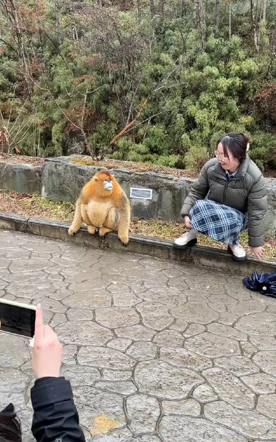 一女子在景区碰见了一只金丝猴,她居然突发奇想学其“蹲式”拍照,这让众多网友直呼学