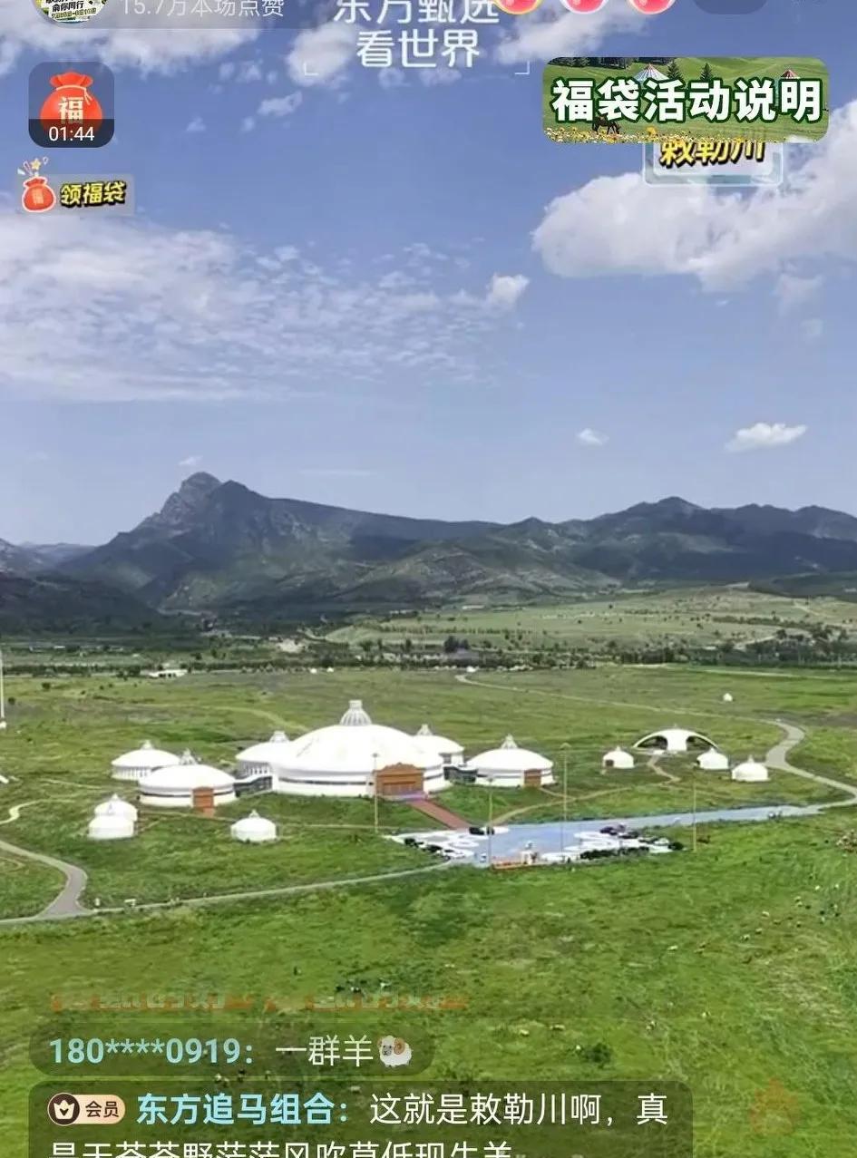 “天苍苍,野茫茫,风吹草低见牛羊…〞 这首动听的歌谣今天在俞老师直播间具象化了,俞老师带广大网友来到敕勒川大草原,三万多亩的辽阔草原,两万多亩的花草无边无际,与蓝天白云,绵延高山连为一体,牛羊自由自在吃草,紫花苜蓿随风飘扬,还有美女帅哥们的歌声和舞蹈,犹如一幅美丽的画卷徐徐展开,不得不惊叹大自然的神奇壮观。