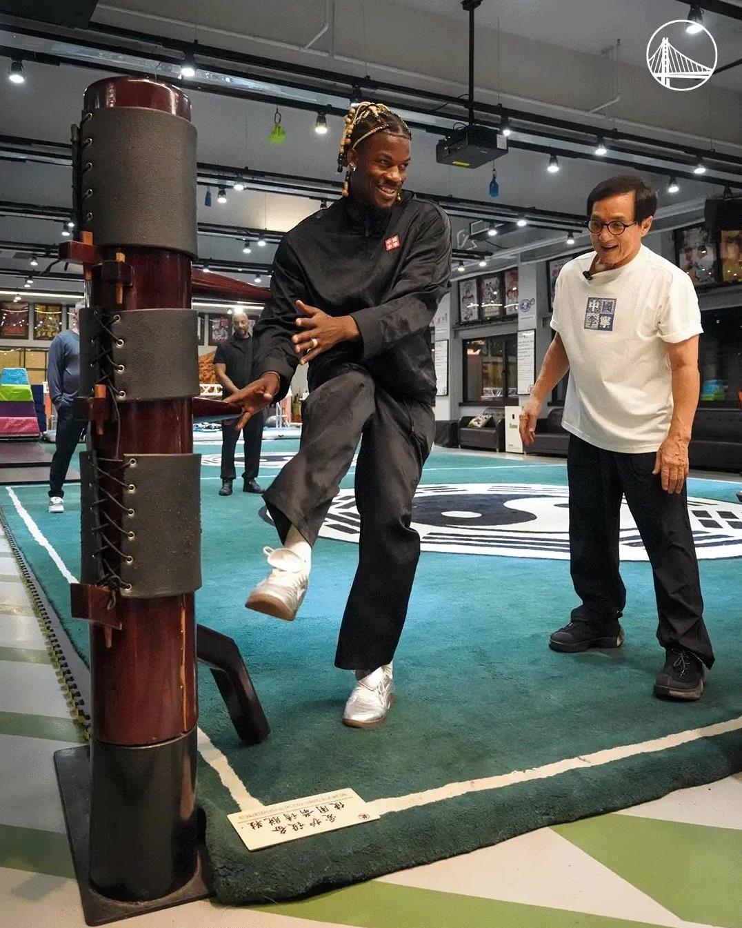 巴特勒真好学啊 勇士官方今天媒体晒出了巴特勒向成龙学习功夫的照片,并写道:“向最
