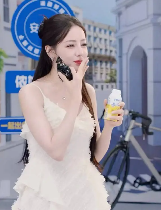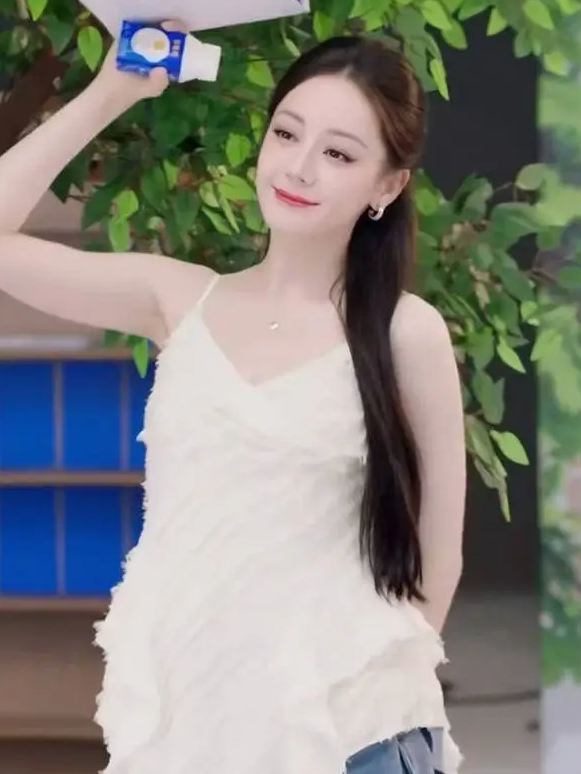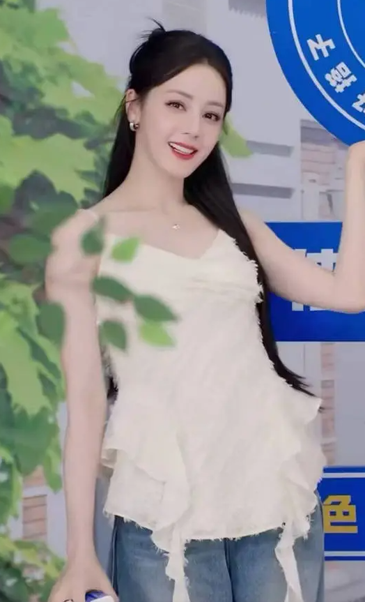 热巴白吊带配牛仔裤,黑长直女神范十足