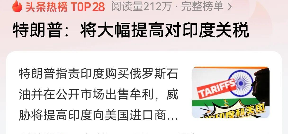 秦安:特朗普和印度彻底闹翻,三重影响不可小视,和中国紧密关联?#头号创作者激励计划# 特朗普对印度的态度出乎预料,本来莫迪和特朗普臭味相投,都想给中国“上眼药水”,结果两个人硬碰硬杠起来了。 当地时间8月4日,美国总统特朗普在其社交媒体“真实社交”发文表示,印度不仅大量购买俄罗斯石油,还将其中大部分石油在公开市场上出售,牟取暴利。因此,他将大幅提高印度向美国缴纳的关税。 究其根本原因,一方面,双方利益冲突,特别是印度和俄罗斯的石油交易,成了特朗普遏制俄罗斯的最大缺口;另一方面,印度实力不够,特朗普欺软怕硬,企图通过制裁印度,给俄罗斯颜色看看。 双方的这种做法,将产生三重影响。 其一,南亚力量格局将悄然发生变化。核心角力方印度和巴基斯坦之间,会有微妙的变化。莫迪得罪特朗普的最大后果,就是宿敌巴基斯坦有了中美双重支持,尤其是巴基斯坦和美方开发石油资源的重大决定,将深度捆绑美巴利益,让印度不敢轻举妄动,再加上巴基斯坦基于中国歼-10获得的空战大捷,情况不一样了。 其二,印度跟着美国威胁中国的做法将有所改变。最典型的就是美日印澳“四方机制”,在美国操纵下,企图对中国形成东西夹击,南边合围的态势。如今,特朗普和印度撕破脸皮,印度配合美国的积极性大减最近在中印边界地区开发旅游项目,其实也是个特朗普颜色看,和中国死磕的意愿大不如从前。 其三,中俄俄三方机制有可能运行起来。俄罗斯一直是这种机制的推动者。客观地看,如果有效运行,有利于金砖国家与上合组织发挥应有作用。但由于印度的墙头草德行,直接成了“绊脚石”。这一次被特朗普几个耳光,有利于印度清醒一些。#秦安战略#