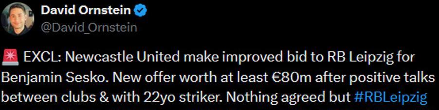 8000万欧基础身价+1000万欧浮动,曼联还跟吗? 为了得到谢什科,纽卡斯尔已