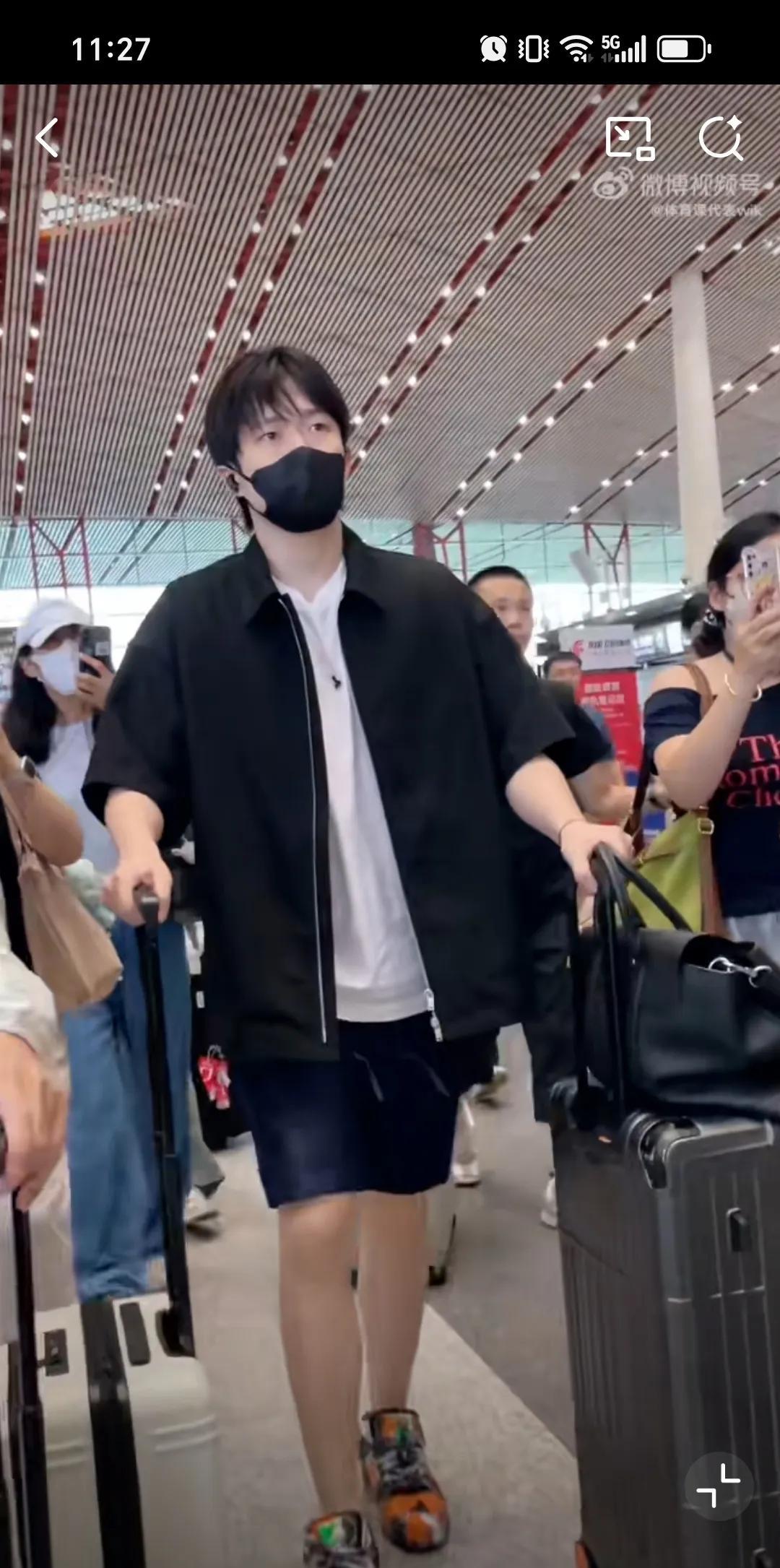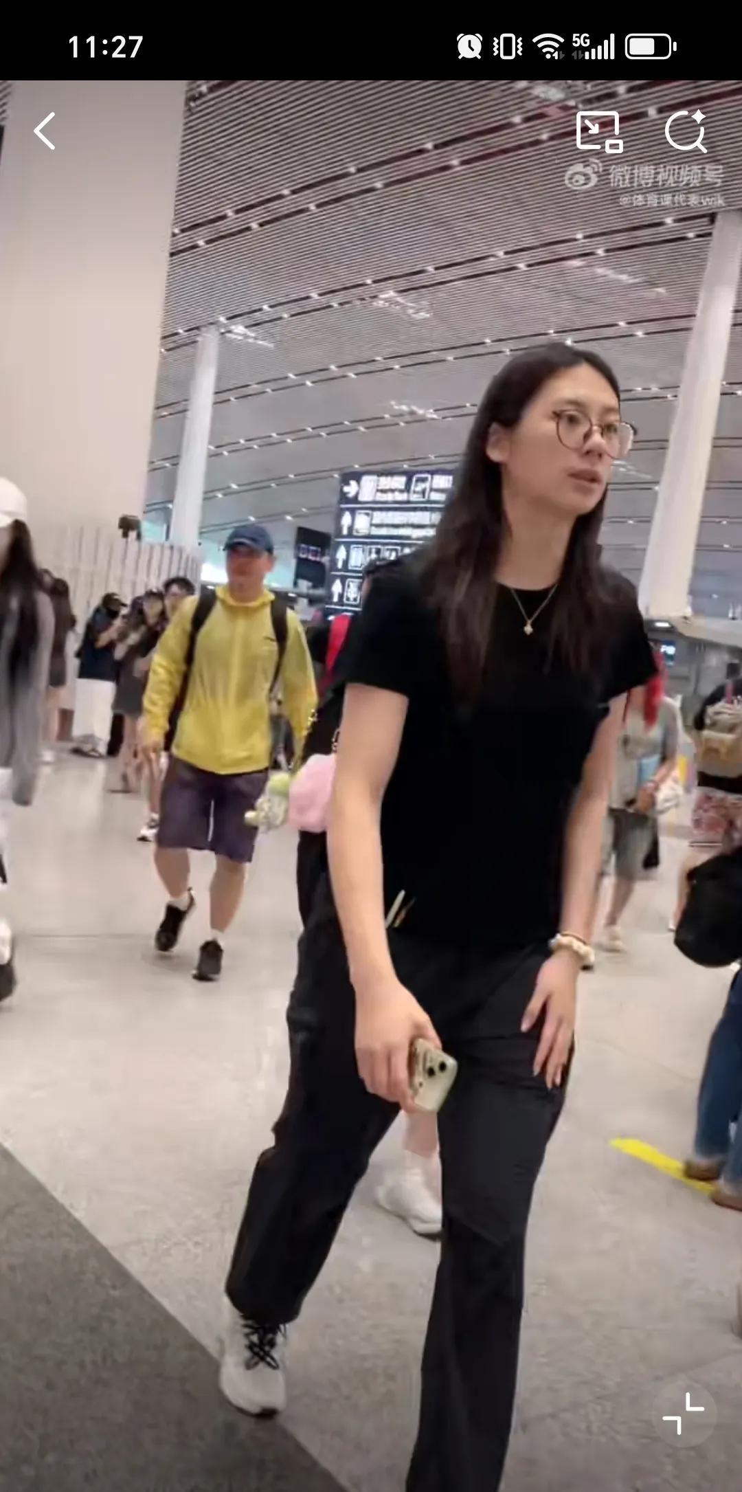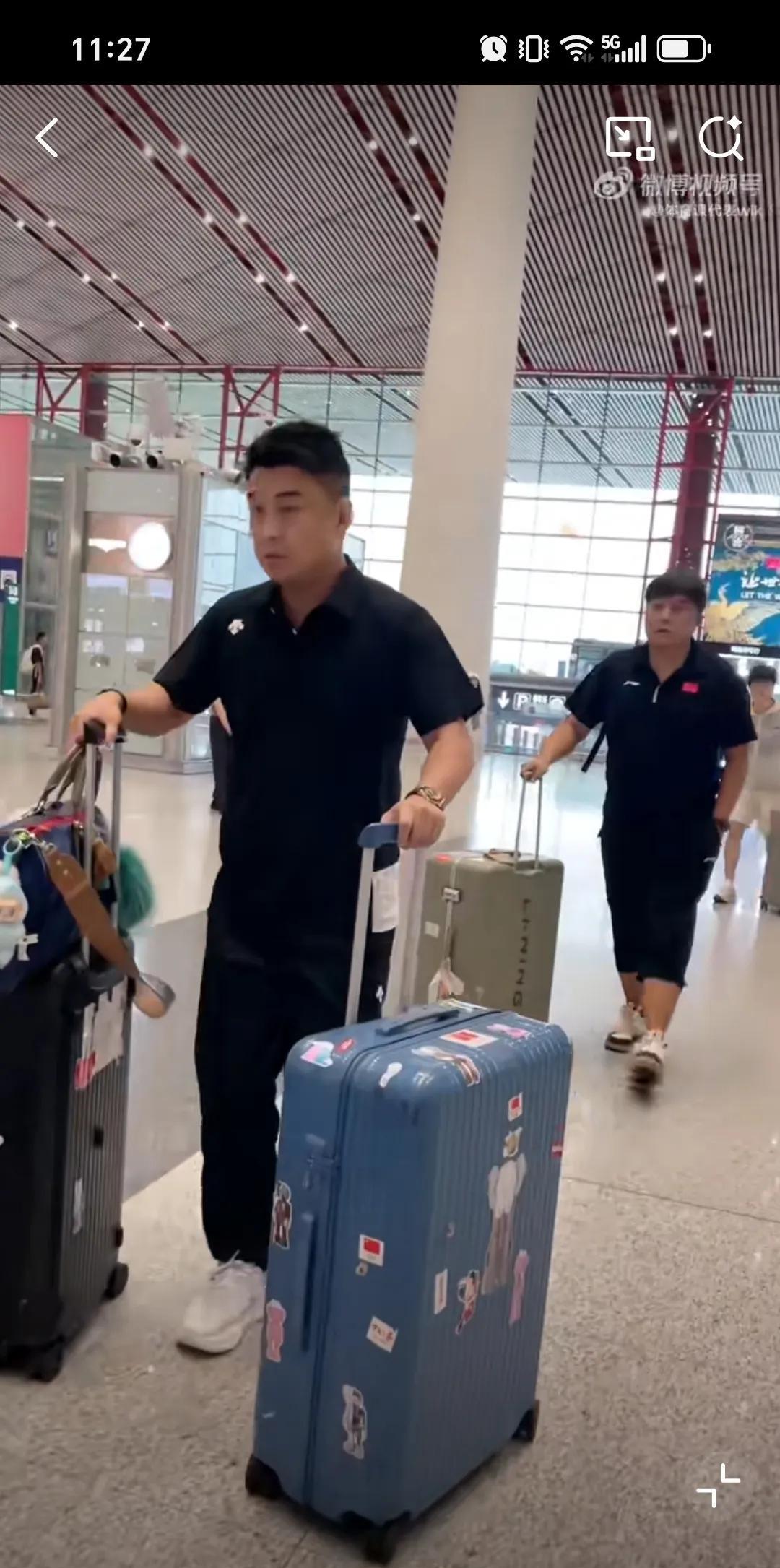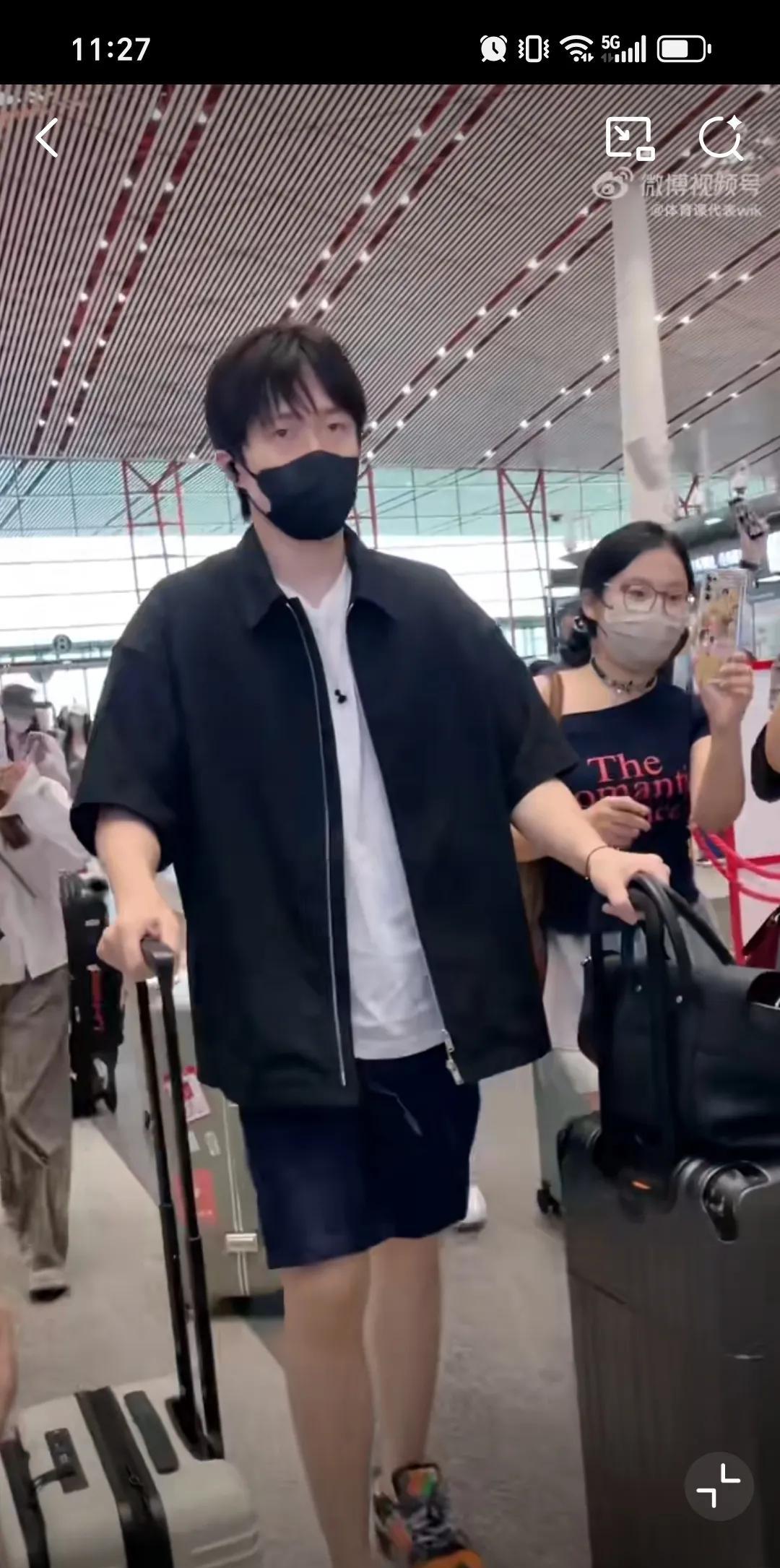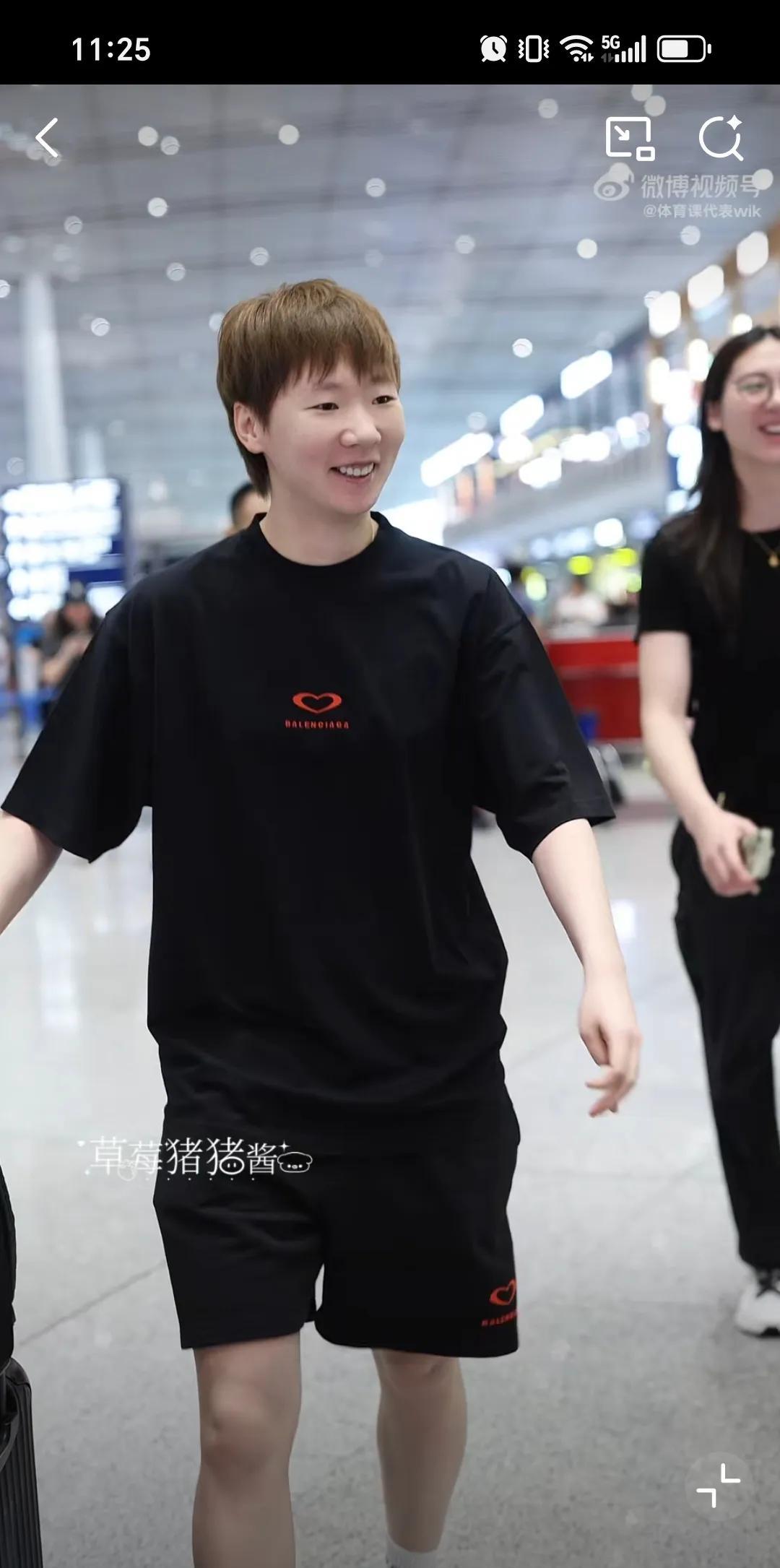 8月5日国乒机场出发,大家默契穿黑色,林诗栋这橘黄色很亮眼。王楚钦,王曼昱,王皓