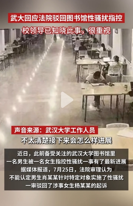 7月25日法院已经一审宣判:不能认定男生肖某某针对特定对象实施了性骚扰,驳回女生杨某的指控。也就是说,肖某某已经摆脱了嫌疑,他是无辜的,对他既往的处理是存在严重错误的。