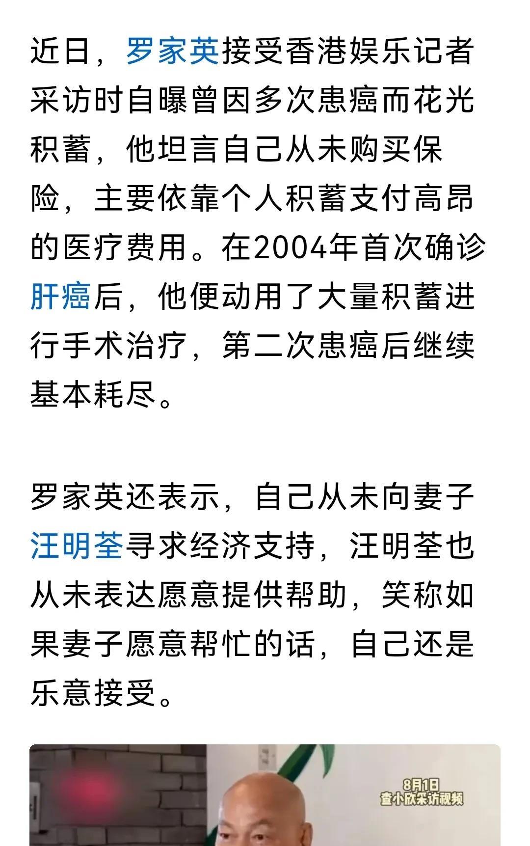 两夫妻做什么都AA,就连两人生大病、得癌症,也都是AA!像汪明荃和罗家英这样能将AA制发挥得彻彻底底、淋漓尽致的夫妻,可谓真正做到了这辈子谁也不欠谁,但同时也失去了结婚的意义:无论疾病还是健康,无论贫穷还是富有,或任何其他理由,都爱他/她,照顾他/她,尊重他/她,接纳他/她,永远对他/她忠贞不渝,直至生命尽头!
