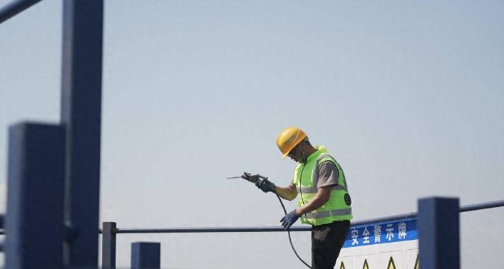 “别让外国人知道!”湖北武汉,工人们正在顶着38℃的高温天气建设汉南长江大桥,但