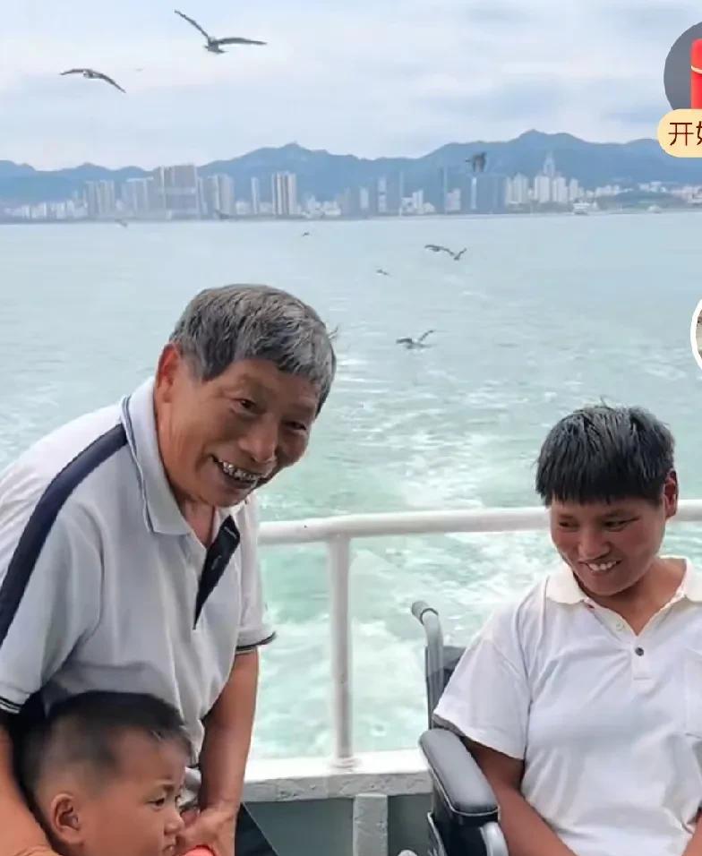 妮娃这次出来可玩高兴了。 老表这次带妮娃出来,妮娃玩好了也吃好了。出门有专人给妮娃推着轮椅。 老表带着坐船游玩,妮娃又高兴毁了,看着一望无际的大海,妮娃高兴的俩腿乱蹬。 坐车妮娃有零食吃。玩完又有人在大饭店里请吃大餐,妮娃这辈子没啥遗憾的了。