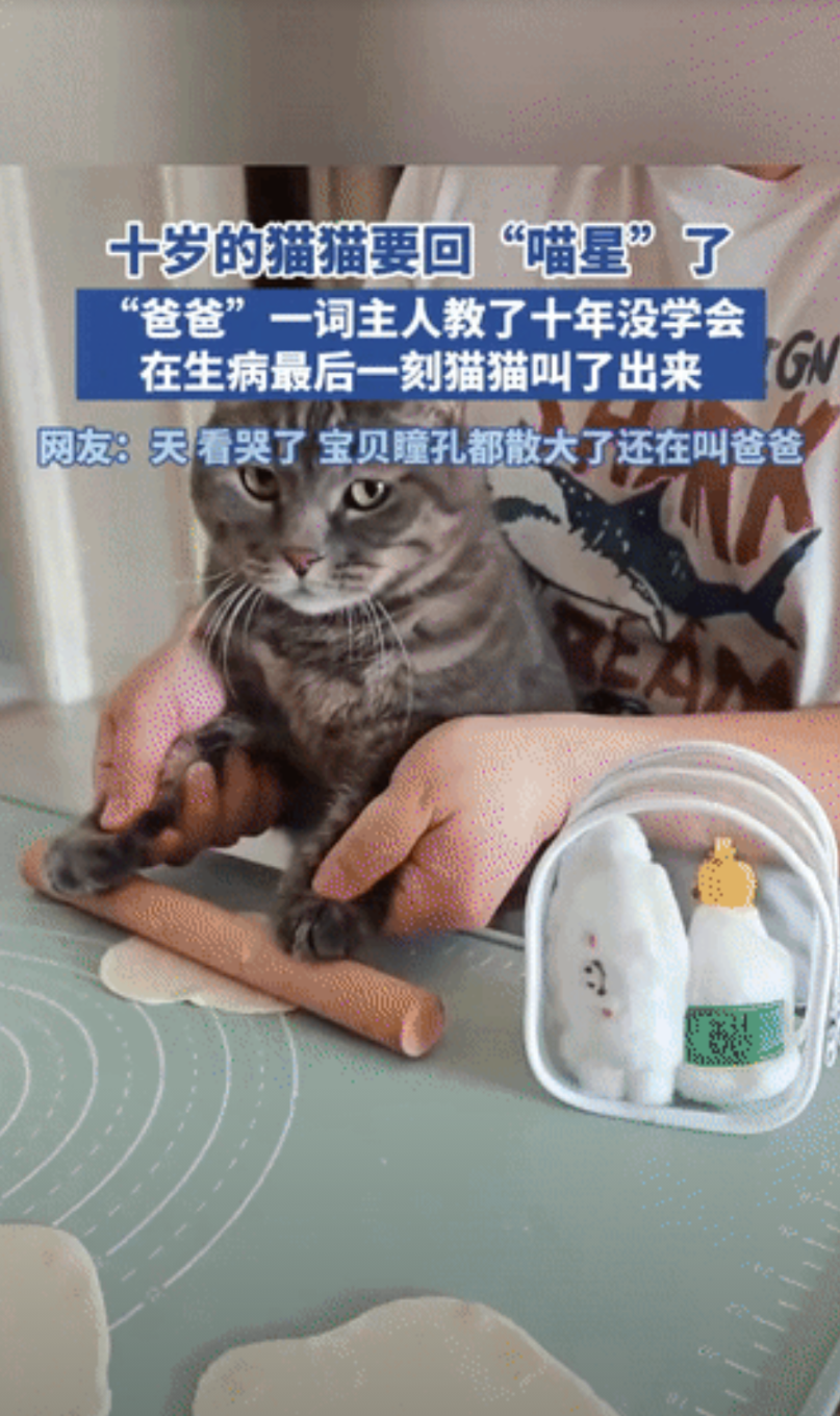 “心都要碎了!”北京,一博主养了10年的猫要准备去“喵星”了,看着自己的猫猫,心疼不已。期间“爸爸”一词主人教了10年都没有学会,在生病离开的最后一刻猫猫叫了出来。网友:看哭了,瞳孔都扩散了,还在叫爸爸!
