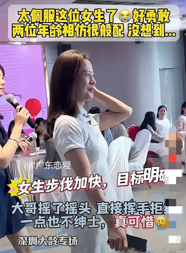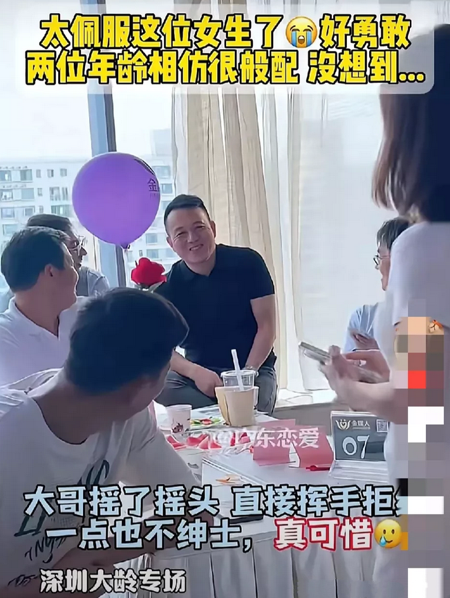 广东深圳,在一场线下相亲会上,有一名大龄女士看上了一名穿着黑色衣服的男士,为了防