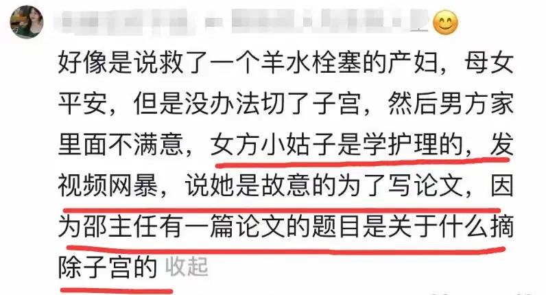 河南周口一产妇分娩时因为羊水双塞危在旦夕,该医院产科主任只得切除其子宫保了母女性命。 但是孩子家里因为是女婴觉得绝了后,然后要求医生和资源赔钱100万,同时在网上进行舆论引导网暴。 一直长达7个月也没谈妥,主刀的医院产科主任最终受不了网暴跳楼自杀。 这其中的悲剧可想而知,有人说只有善良的人才会因此自杀,有人说医院难辞其咎,还有更多人说人心变了! 如果不出意外,我相信又有很多人去扒产妇都那一家进行反网暴了,因为有人说是女方小姑子造谣说自杀的产科主任为了写论文然后在可不手术的情况下要家属同意手术的。 我想说,各位网友不是一天两天才上网的,网上真真假假的可不能随意就下结论、站队,别人因为你无脑的谩骂最后自杀证明清白,你的良心会痛么? 我老婆生孩子的场景我一辈子都不会忘,早上凌晨四点到医院开始等,医生除了给她打止疼针,啥都没做。 一直到晚上一点钟才进产房,我是交了500块才允许进去陪产。在产房个把小时,孩子脐带绕颈,最后还得剖了,自始至终就两个小姑娘在那操作,也没见过什么产科主任。