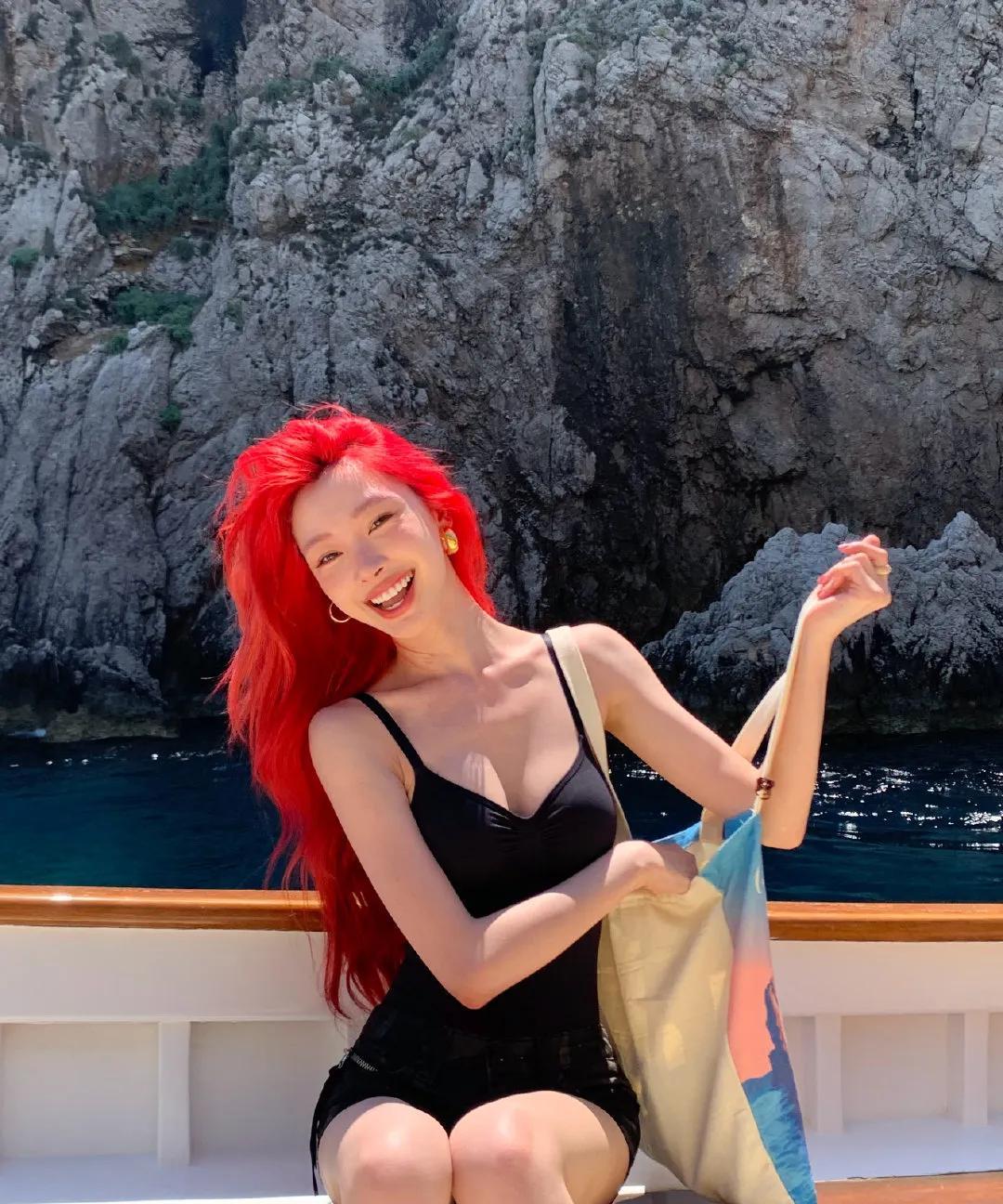 易梦玲真能摆身材,有这身材确实可以显摆了,但是这红发是不是有点不适合她了。#易梦