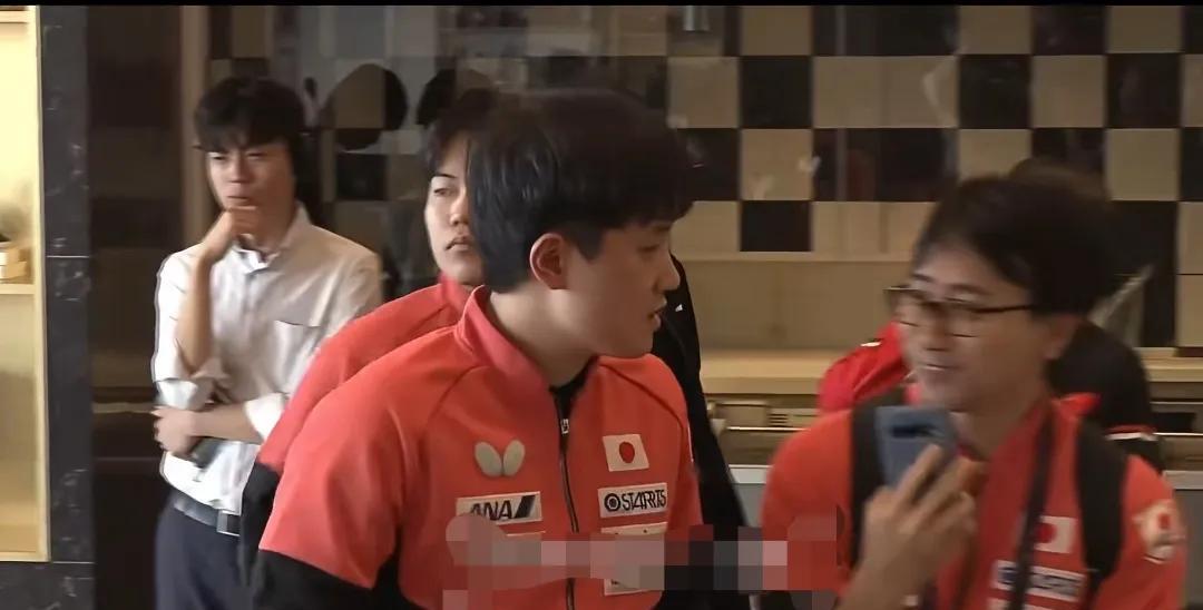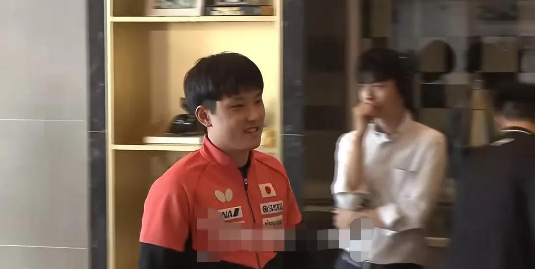 张本智和出现了。 因为电车突然停运,导致参与抽签仪式迟到的张本智和,在仪式结束后