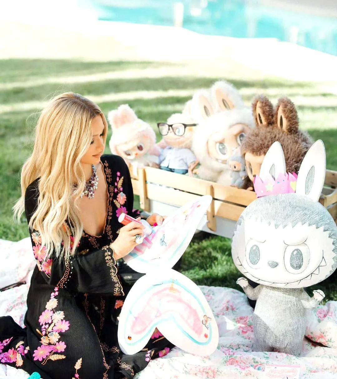 希尔顿大小姐和大头儿子、女儿London以及Labubu们的惬意艺术手工日!