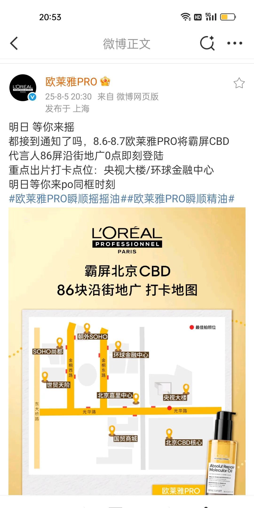 欧莱雅PRO好有仪式感啊!86块代言人肖战地广霸屏北京CBD,央视大楼是最佳拍照位之一,你是要带着肖战去央视大楼刷刷脸啊!其实不用的,我们肖战在央视那边存在感挺强的