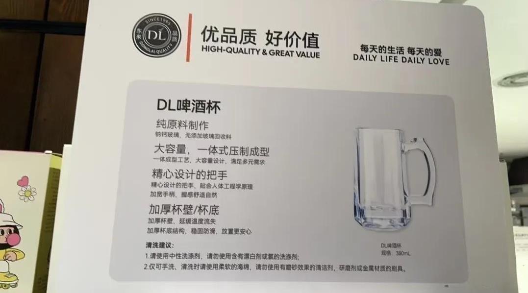 胖东来上架自营品牌啤酒杯,采用钠钙玻璃材质制作,一体压制成型,耐温0-50度,容量380ml,一个15元。卖的贵原因就是比起便宜杯子,没有使用回收料。 很多人都不知道吧?玻璃其实也可以回收,只是价格太便宜,没人捡,也没人收,但如果量大就不一样。
