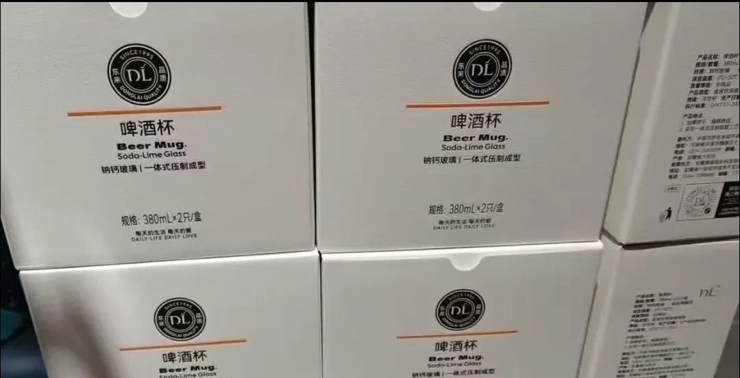 胖东来上架自营品牌啤酒杯,采用钠钙玻璃材质制作,一体压制成型,耐温0-50度,容