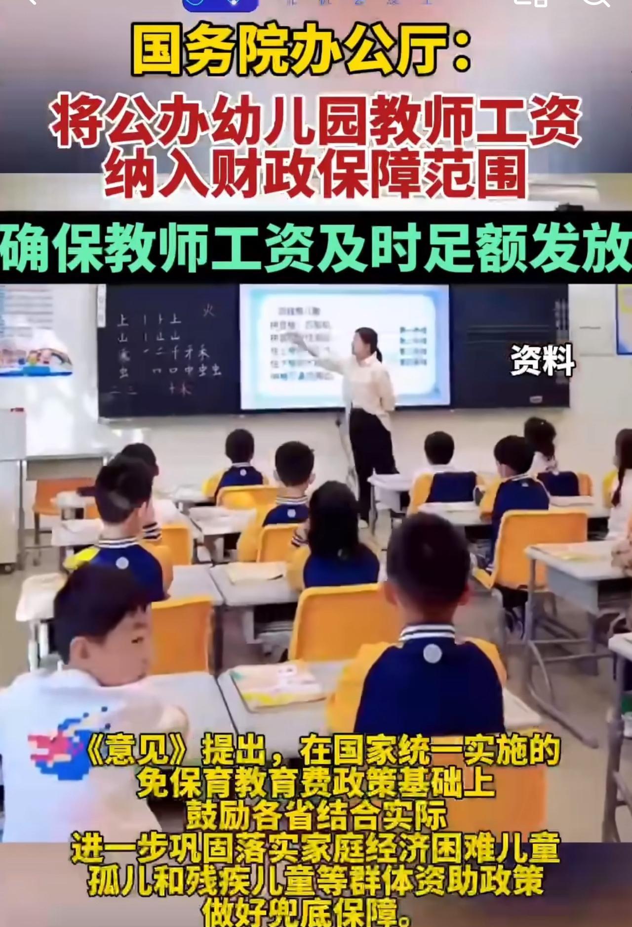 #公办幼儿园教师工资纳入财政保障#国办将公办园教师工资纳入财政保障,免除学前一年