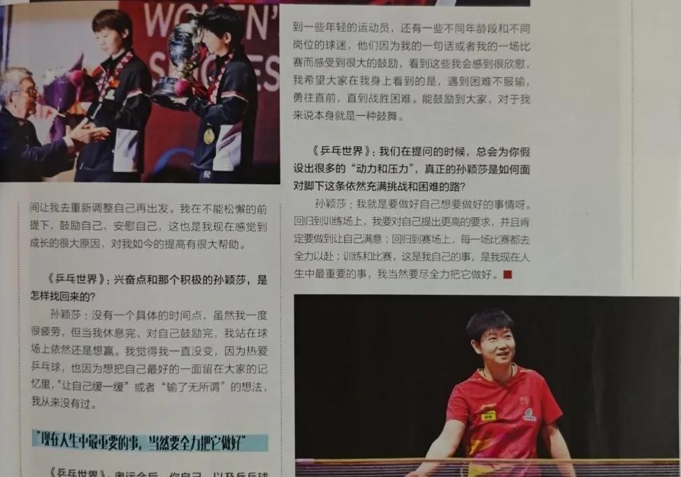 #头号创作者激励计划#《乒乓世界》八月刊孙颖莎(上):保持简单的心打好每一场