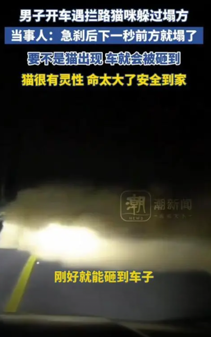 万物皆有灵!2月17日晚上,陕西榆林一男子晚上开车,在下坡路上遇到拦路猫咪,男子吓得赶紧踩刹车,下一秒发生的事情让男子脸上直冒冷汗,男子:“感恩,生灵拦路必有因......”