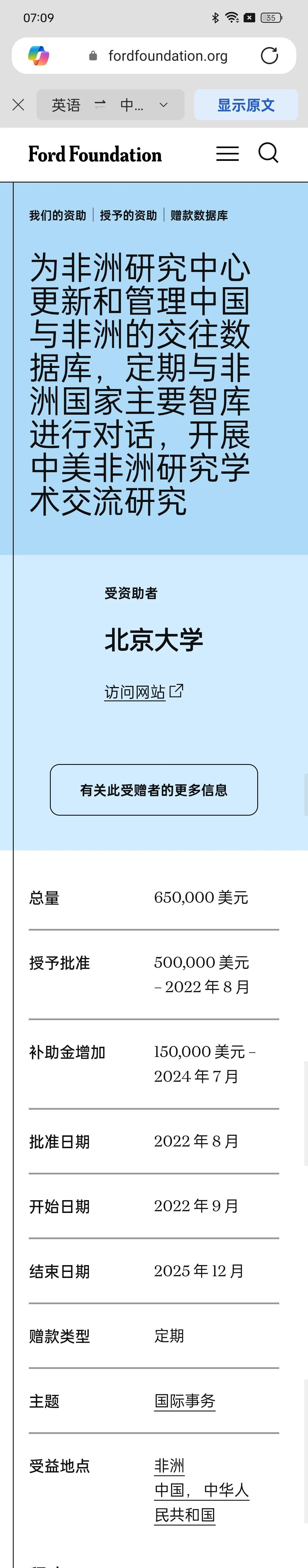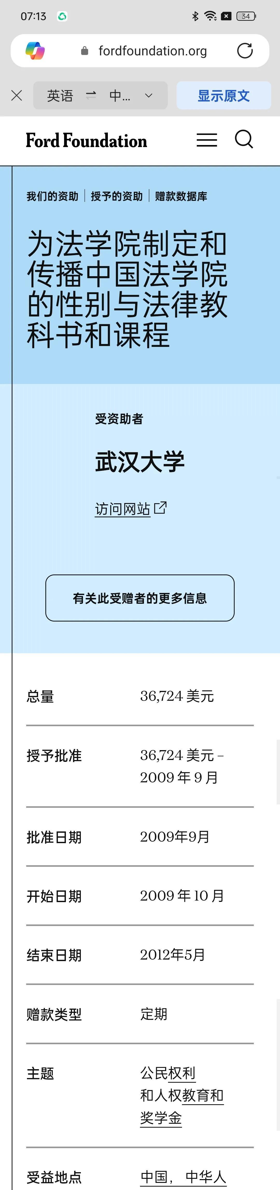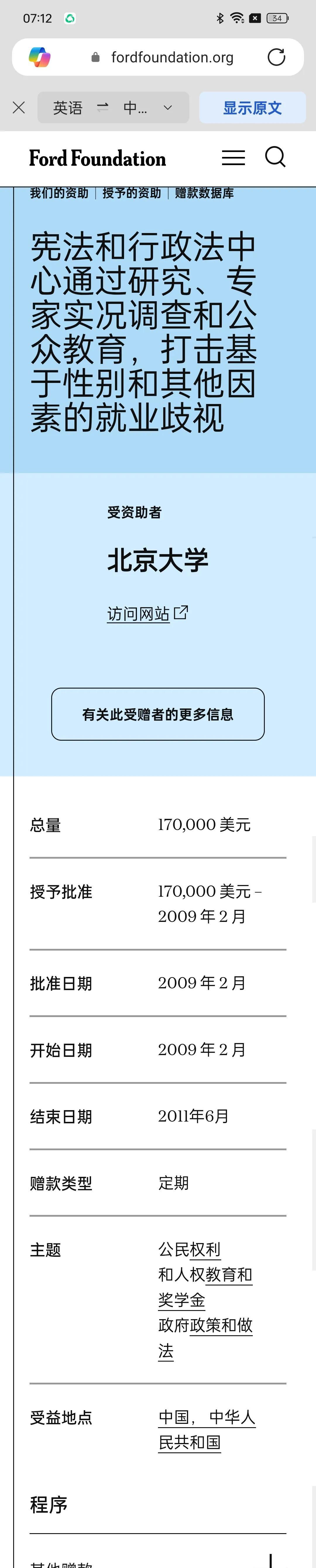 福特基金会资助北京大学45个项目,总金额上亿,多数和女拳有关 美国福特基金会在它的主页上明确说,它的核心价值观是支持女性,黑人,和lgbt。 它的中国区管理层除了一个白人男子,其他全部是女性,多数是华人女性。用来向中国输出女拳。 福特基金会总共资助了北京大学45个项目,总金额上亿。多数和女拳有关。比如 妇女法律研究,打击基于性别的歧视。 打击基于性别的就业歧视 此外,北京大学还拿到与非洲黑人对话的资助 比如 为非洲研究中心管理中国与非洲交往数据库 武汉大学总共拿到5个项目, 中国法学院的性别教程 中国性别平等地图 按性别划分关键人口特征 复旦大学拿到 4个项目 包括 艾滋病与性别课程等 清华大学拿到30个项目 每个女人,每个孩子计划 所以现在知道杨景媛以及挺它的各个高校背后是什么组织了吧。