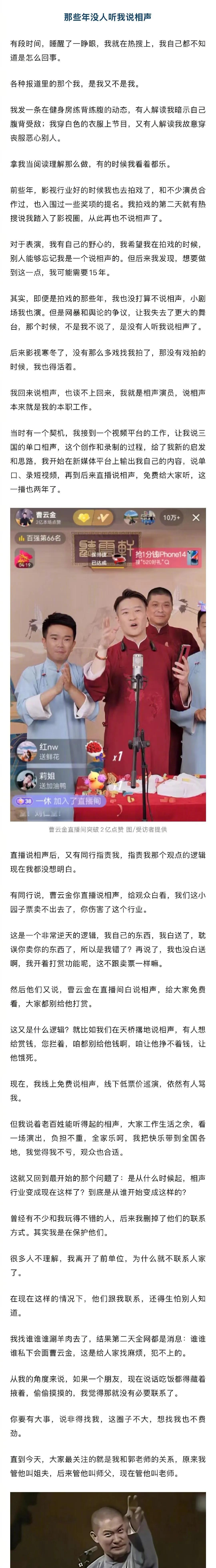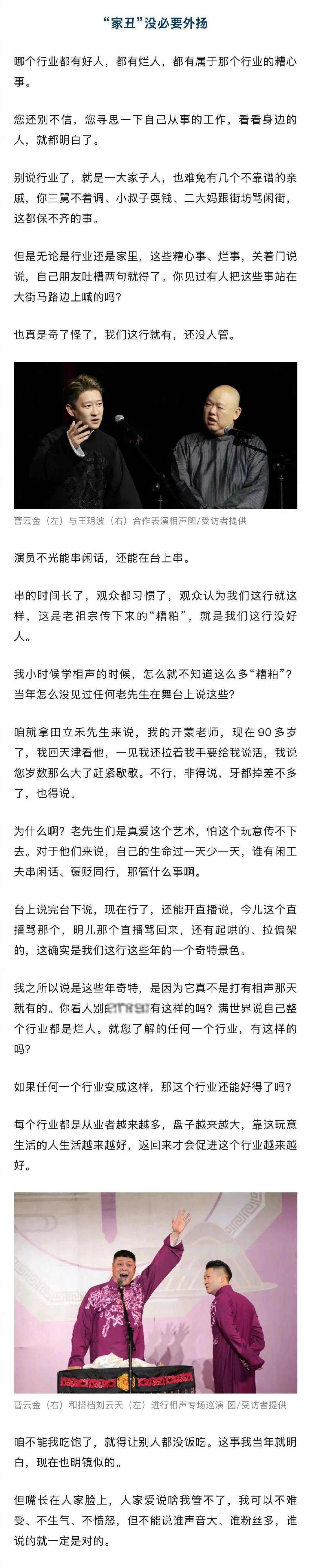 曹云金这几年可太火了!线上线下几百场相声,人气爆棚。有人说他成功“洗白”,他却笑