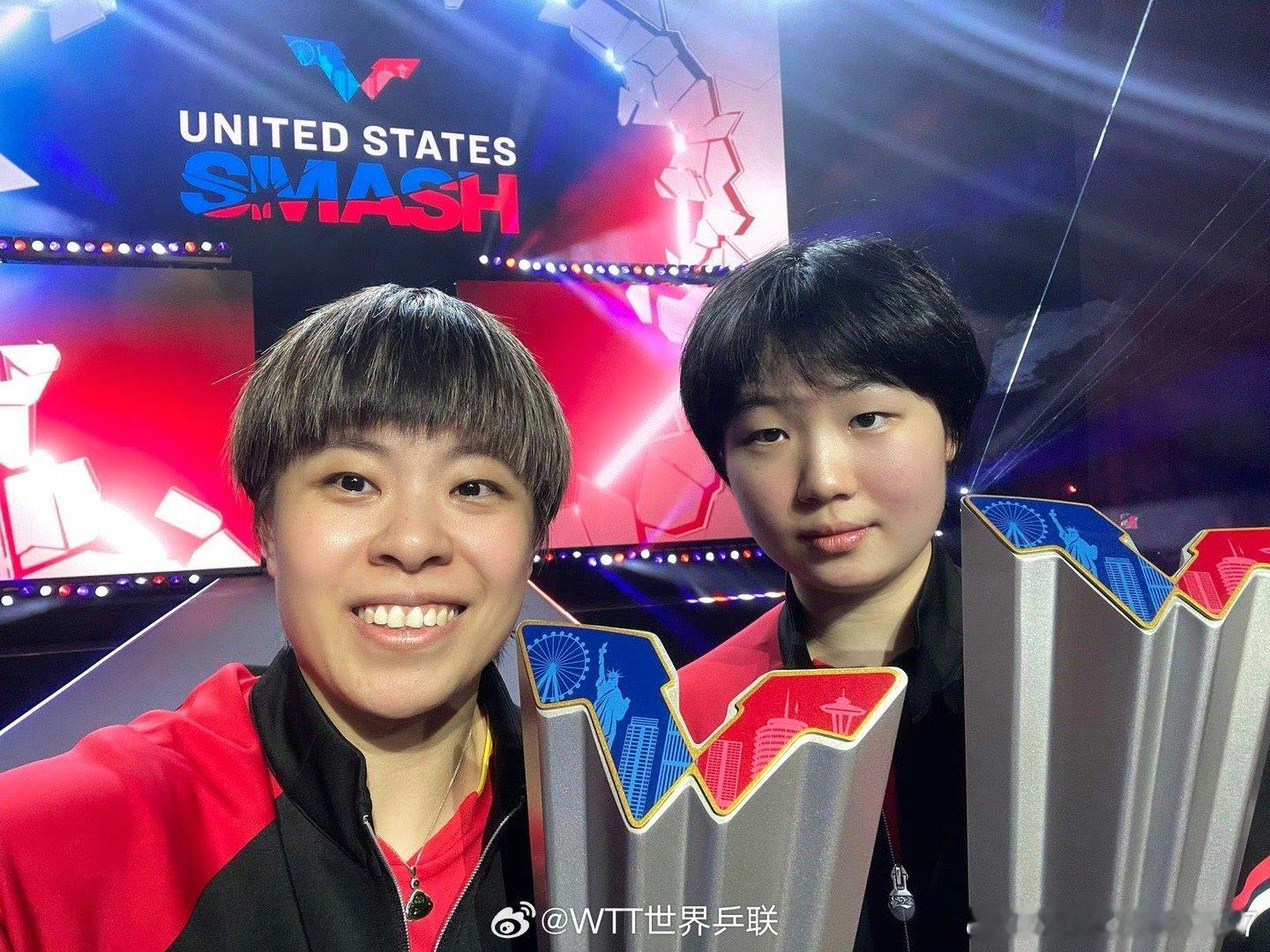 wtt美国大满贯2025 第一次来到美国参加比赛,首先很开心和时隔两年多的再次配对能拿到本次比赛的女双冠军[打call] 🏆每一场都非常艰难,每一场也都非常坚定!