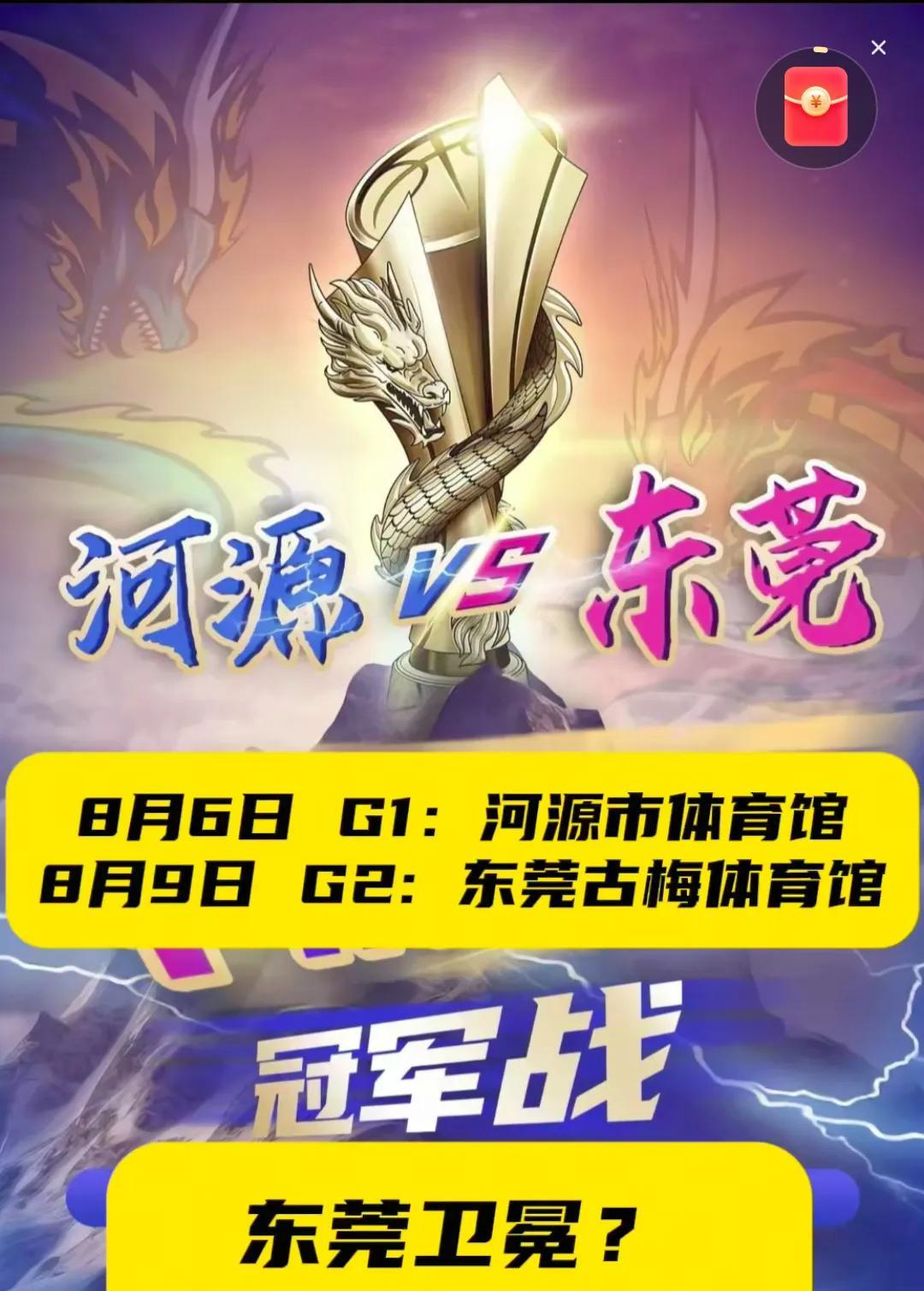广东,广东,广东,2025年广东省男子篮球联赛决赛来袭,不出预料,最近五年三次决赛相遇的对手,再次相遇 东莞队与河源队,河源队今年引入多名CBA效力过的球员,王睿泽,赵锦洋,万圣伟,黎伊扬,东莞有李源宇,陈国豪的加盟 东莞队是一支劲旅,已获得10次冠军。 河源队尚未获得过该赛事冠军,但是三次进入总决赛,均输给东莞队 2019年总决赛:东莞队以两回合总比分216比155战胜河源队,夺得五连冠。 2020年总决赛:东莞队击败河源队,实现六连冠。 2024年总决赛:东莞队以2比0的大比分战胜河源队,捧起了广东省篮协为省联赛十周年特别打造的“盘龙奖杯”,达成十连冠伟业。 2025年总决赛:目前两队已会师总决赛,总决赛将于8月6日、8月9日分别在河源主场与东莞主场进行。 今天首场比赛我们一起关注