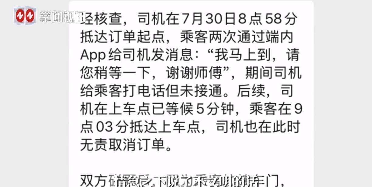 “解释不清了!”7月30日,浙江杭州,一网约车司机在接单乘客时,等了5分钟对方还