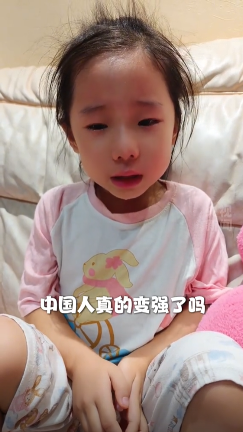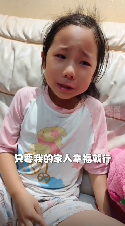 妈妈告诉她女生也能当兵,小姑娘接着坚定地说:“那我要护着中国、爱中国,就算受伤,就算……就算怎么样都不怕,只要家里人好好的。”