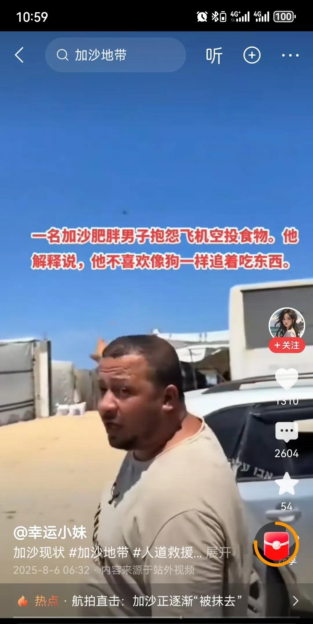 这图大概率是编的,以色列会守在空投附近,谁去捡物资就炸谁,但还是有很多加沙百姓在附近等机会冒险抢一点食物回来。因为太饿了,比起被饿死炸死还痛快点,他们连被炸都不怕还会嫌弃空投吗?