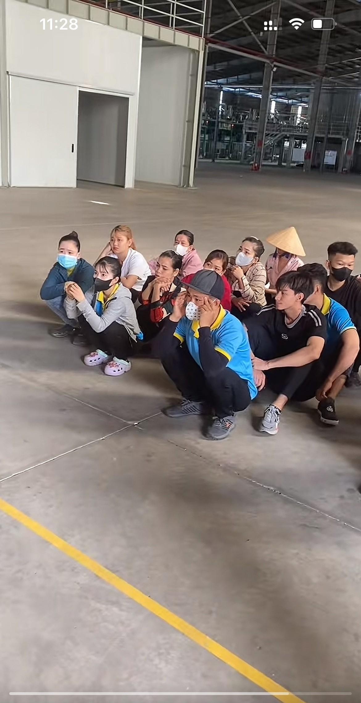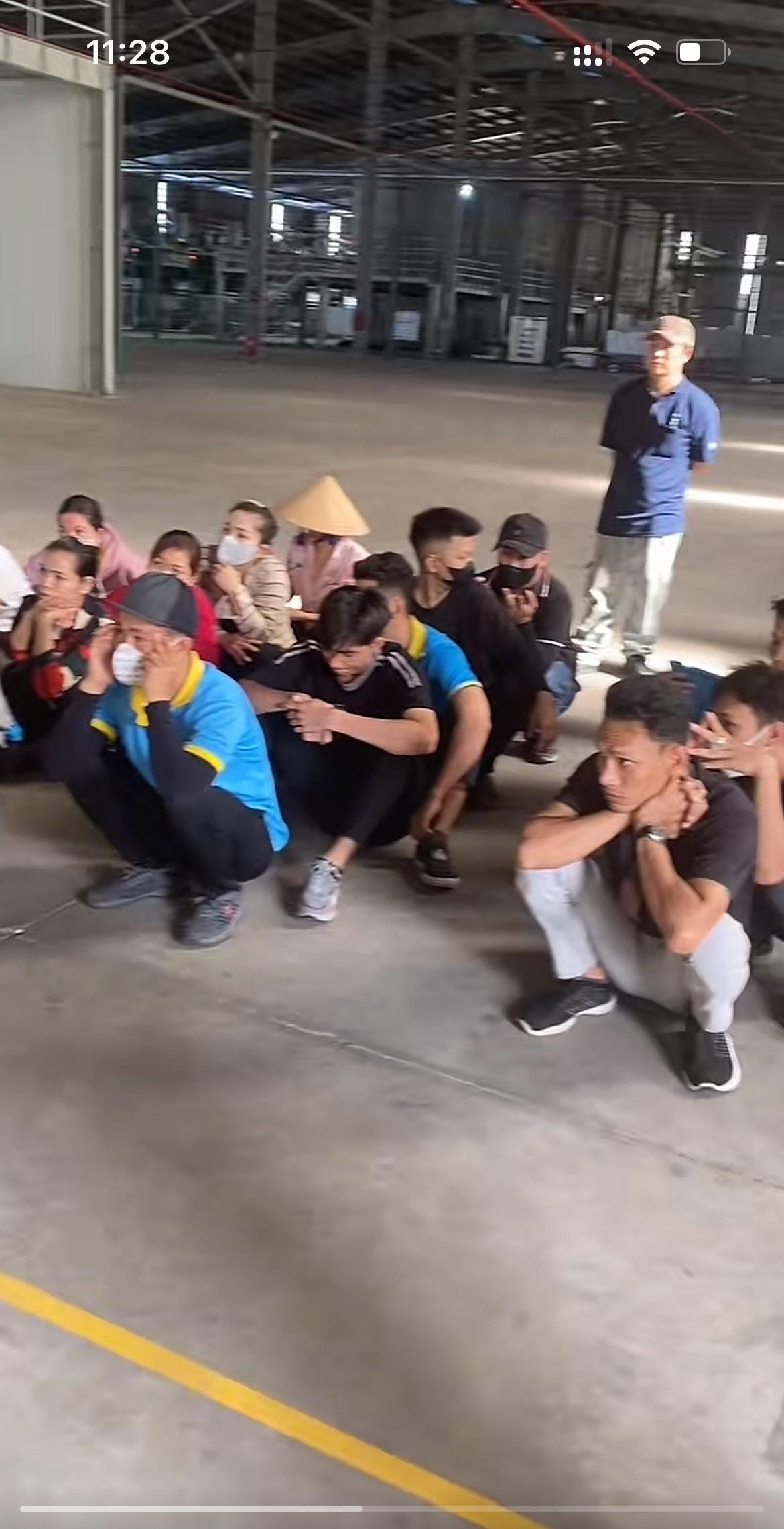 越南工厂每天早上都要开会,拉管理十几二十号工人,每条拉都有一个拉长一个助拉还有一个物料员,这边开早会工人是墩地上或者坐地上听的也可以站着。