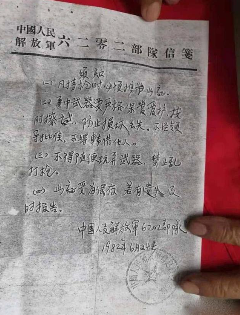 部队特批的持枪证上盖着6202部队的大红章,白纸黑字写着"准予携带"。