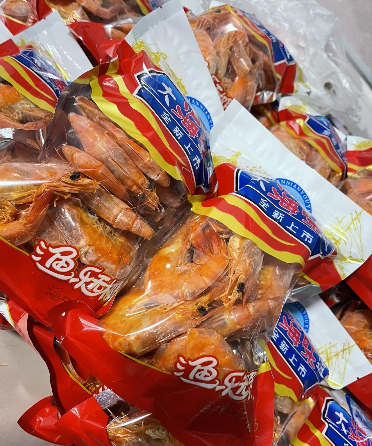 #谁懂这一口的好吃程度 烤虾。这是烤虾不是酥虾昂,烤虾是用对虾烤的,个头大,得扒了皮吃,还可以用它炖菜吃,跟吃牛肉一样艮啾啾的。 新鲜的无任何添加剂。