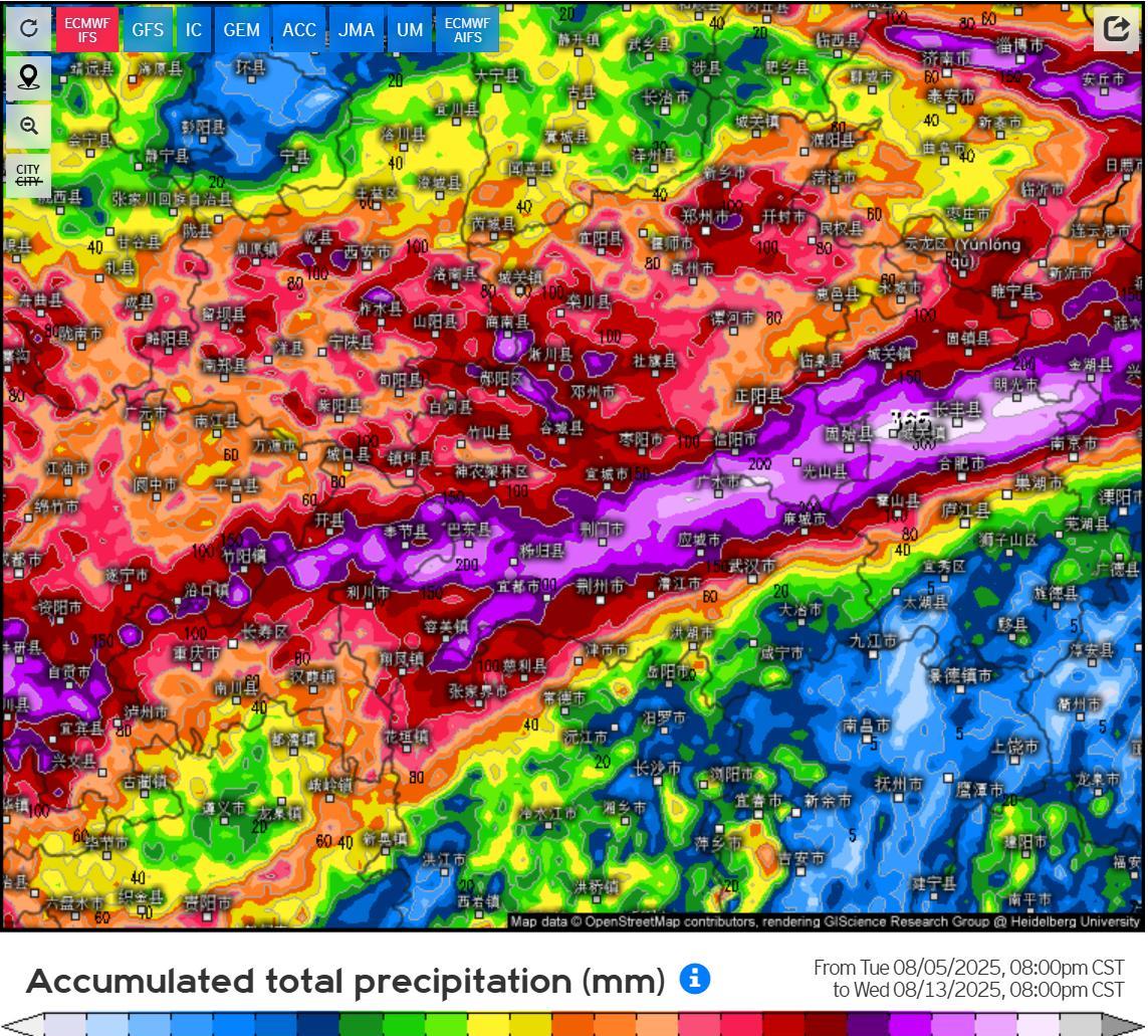 江汉、江淮流域今年亏欠的梅雨马上就要补上了,9号起随着副高逐步减弱南退,冷暖气流将在江汉、江淮流域持续交汇,给当地带来3-4天的持续性强降雨天气。根据中央气象台的降雨预报,9-12号重庆东部、湖北中北部、河南南部、苏皖中部地区将持续出现大到暴雨天气,累积雨量可达200-300毫米。这些地区恰好是今年6-7月雨水最少的地区,这场暴雨后黄河以南的雨水分布就基本正常了,河南南部、苏皖中北部的旱情有望得到彻底解除。 #头号创作者激励计划#