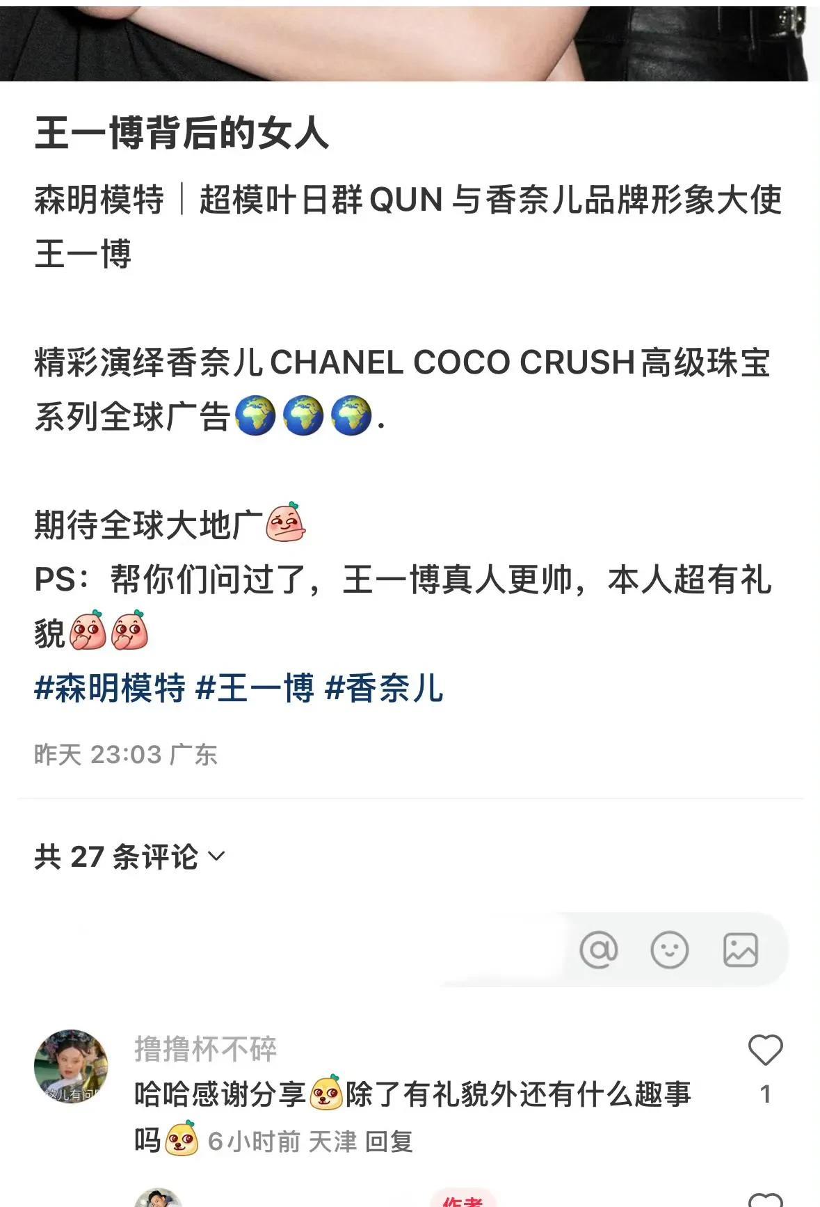 看到这张照片是何感受? 王一博背后的女人,也就是这个模特,她说,王一博本人比照片